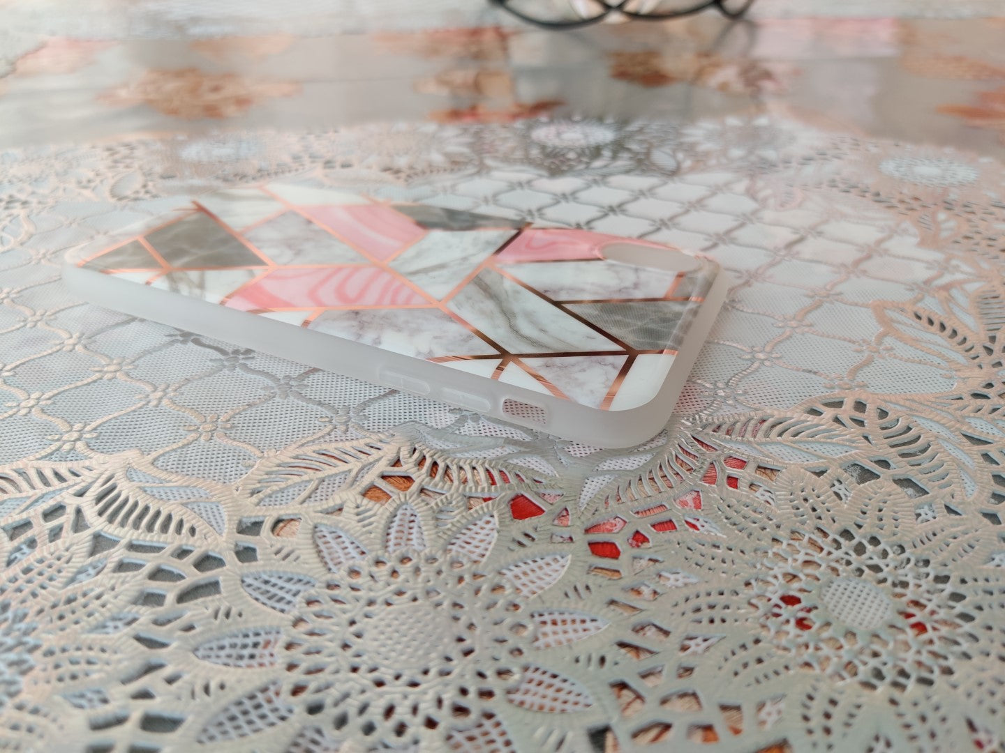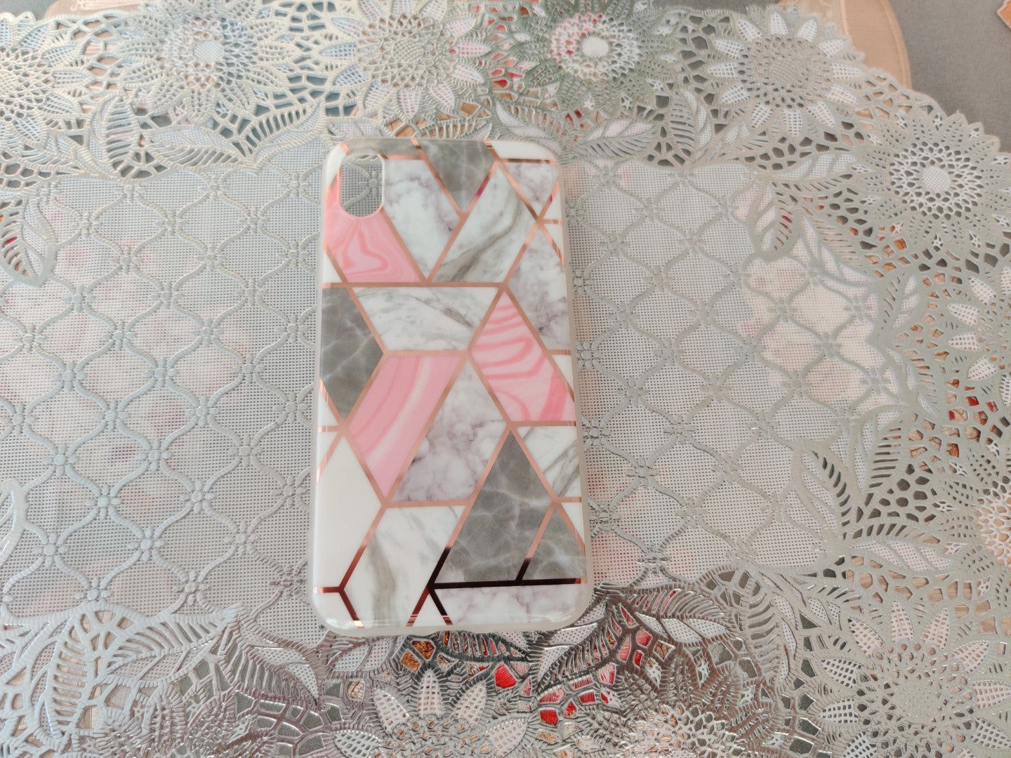Marble Geometric TPU Coral Case - For iPhone XR