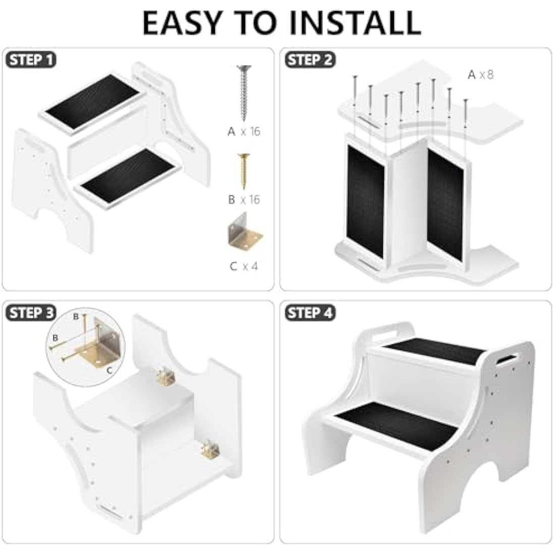【With Non-Slip Mat】 - Two non-slip pads on the top of wooden step stool will prevent the child from sliding... Read more