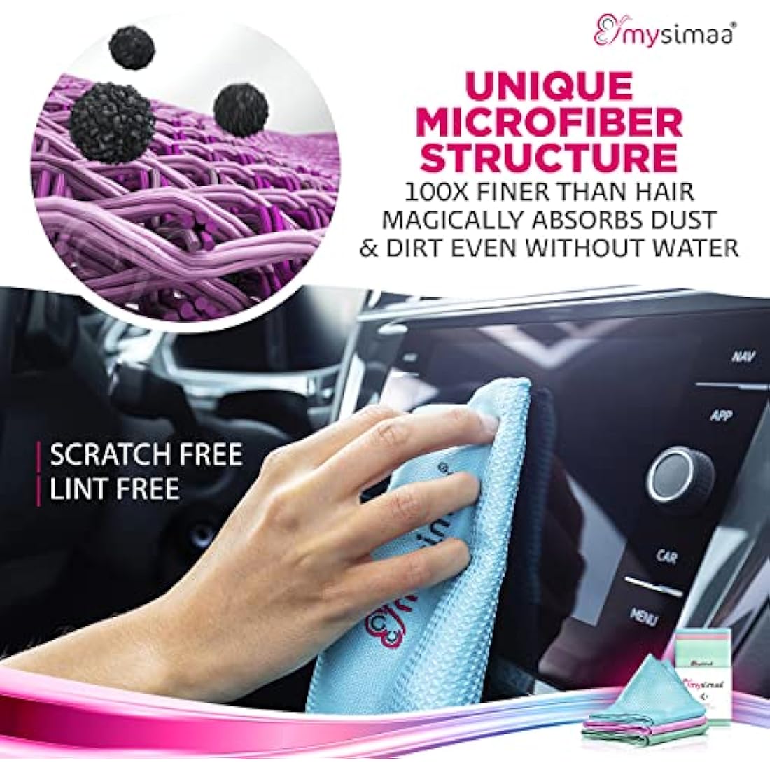 mysimaa® Premium Microfiber Cleaning Cloths - Professional microfibre cloth or dusters for cleaning to get streak-free, lint-free shine in home products, car cleaning, kitchen, dishes, window, glass.