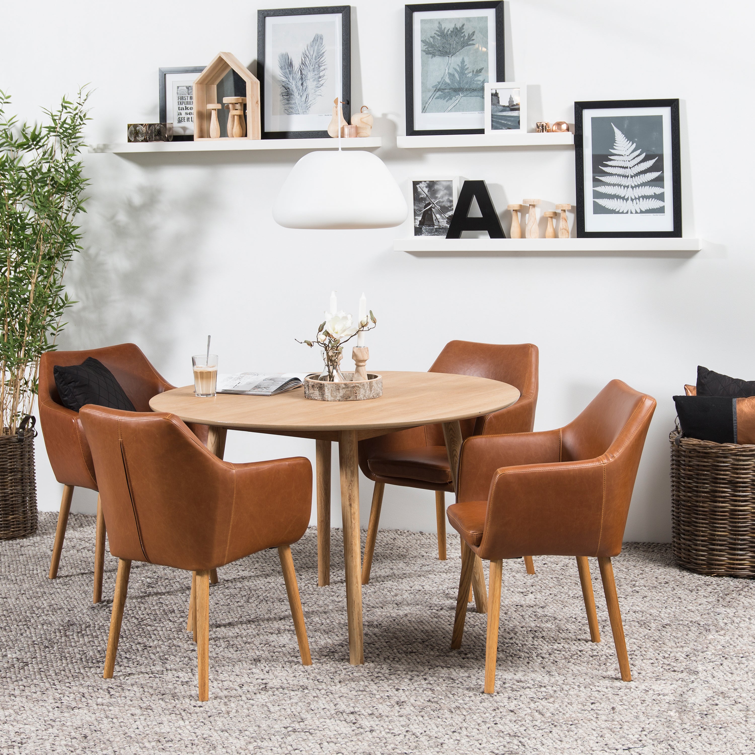 Nagano Round Dining Table in Oak Included 4 Ida Dining Chair in Oak
