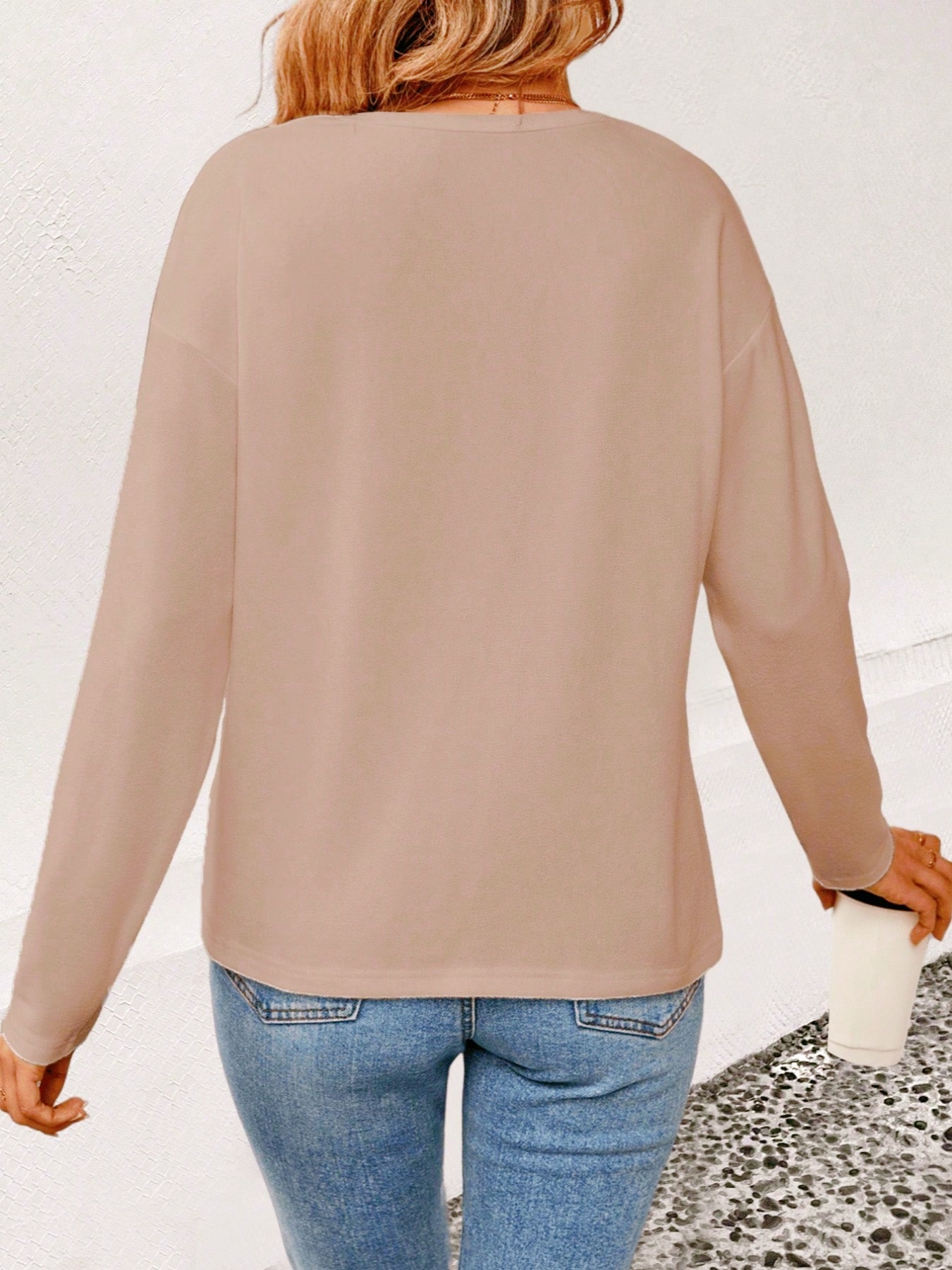 New Arrival Gold-colored V-neck Solid-color Casual Long-sleeve Outerwear Top