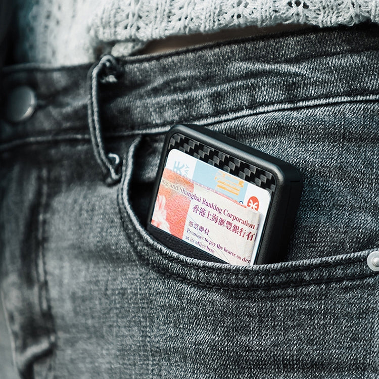 New-Bring Carbon Fiber Metal Card Holder Male Personality Card Holder Anti-Theft RFID Ultra-Thin Small Card Box(Black)