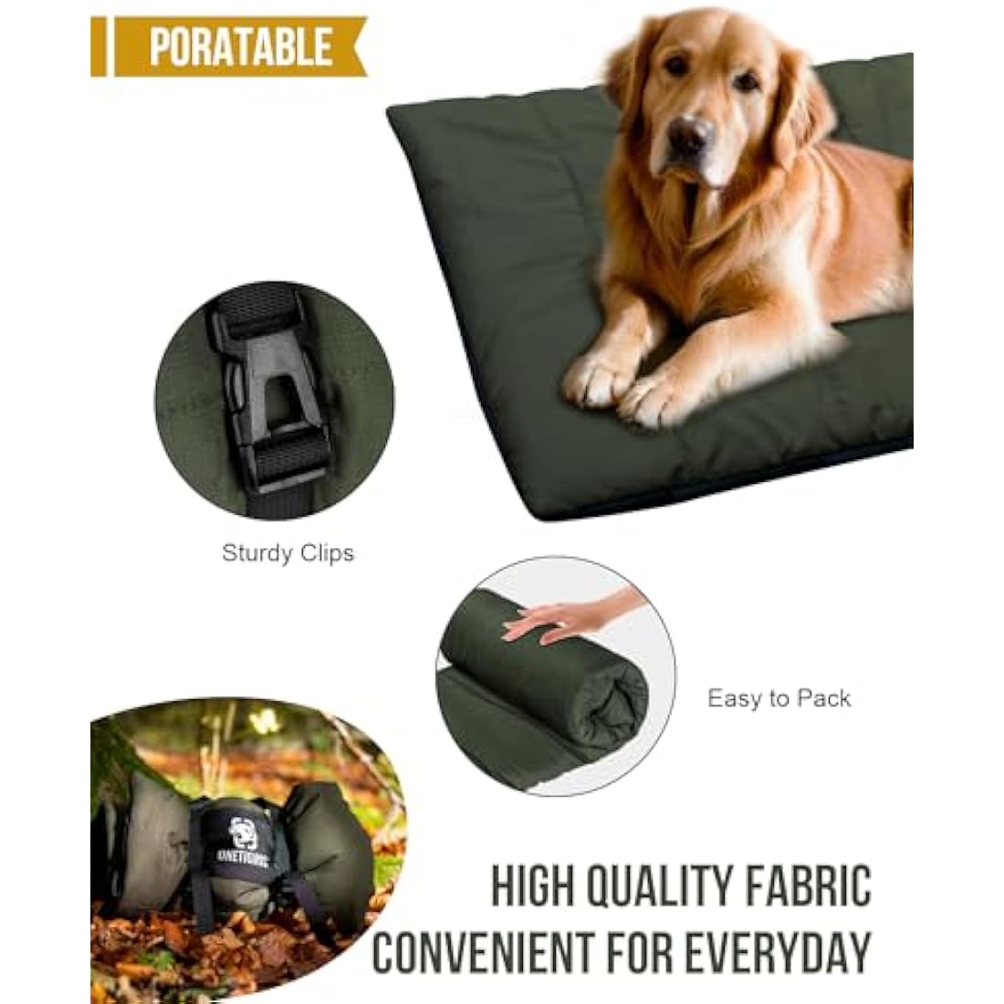 OneTigris Dog Bed Travel Large, Portable Dog Bed Camping for Washable Durable Oxford Portable Sleeping Mats for Car Crate Sofa also For Indoor Outdoor Camping Travel Green (M)
