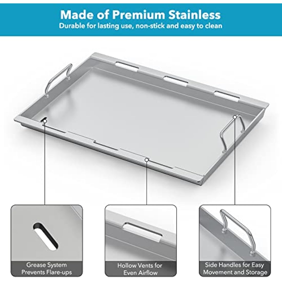Onlyfire Stainless Steel Rectangle Griddle Plancha with Handles and Grease Hole for Weber Spirit I & II 300 Series Gas Grills, Spirit 400 Series Gas Grills, Replacement Parts for Weber 6787