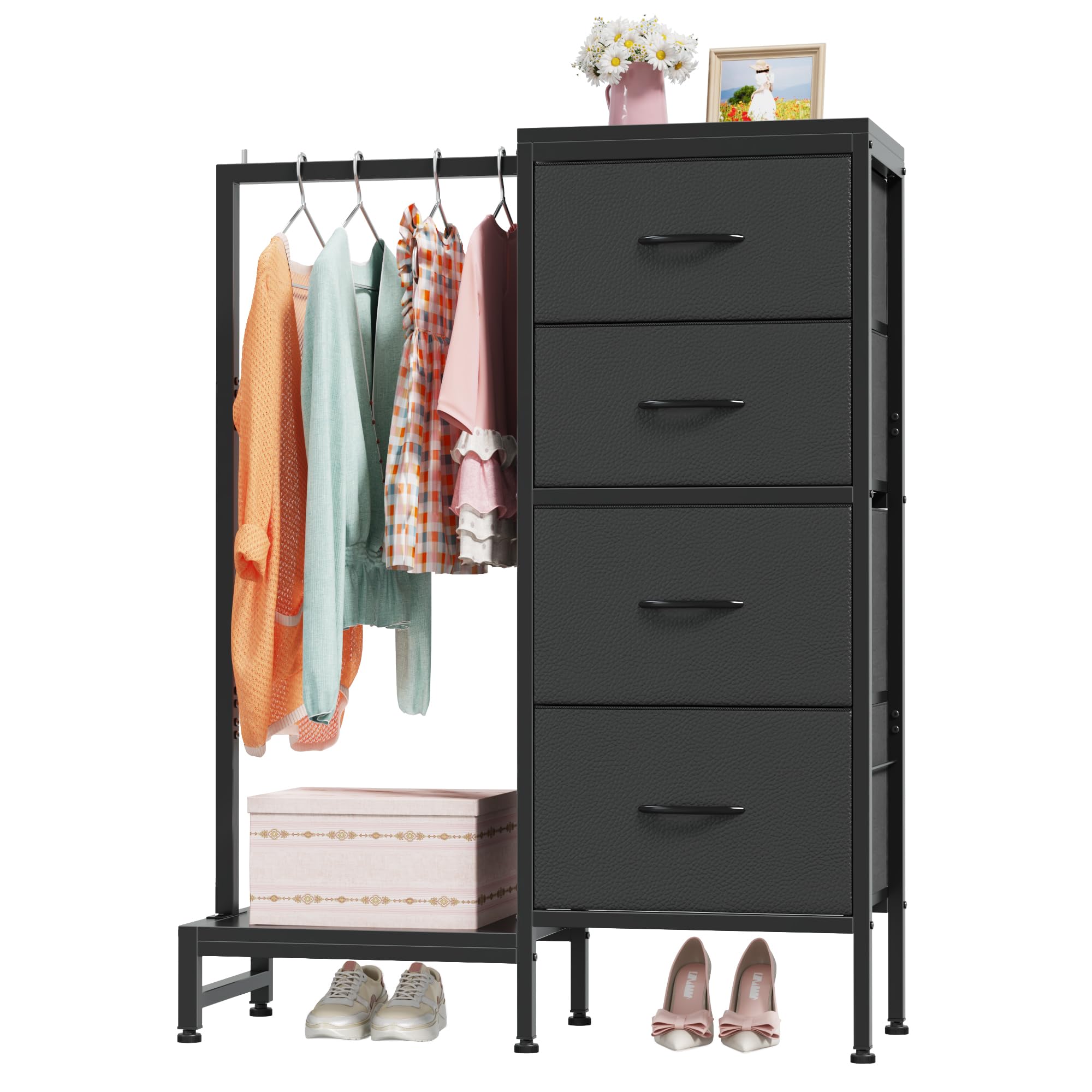 Features ?【3-in-1 Chest of Drawers】 Combine hanging rack+4 spacious drawers+shoe holder in one unit. It has a stopper so the... Read more
