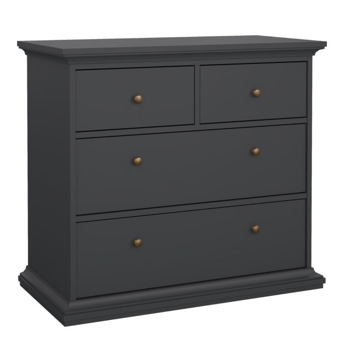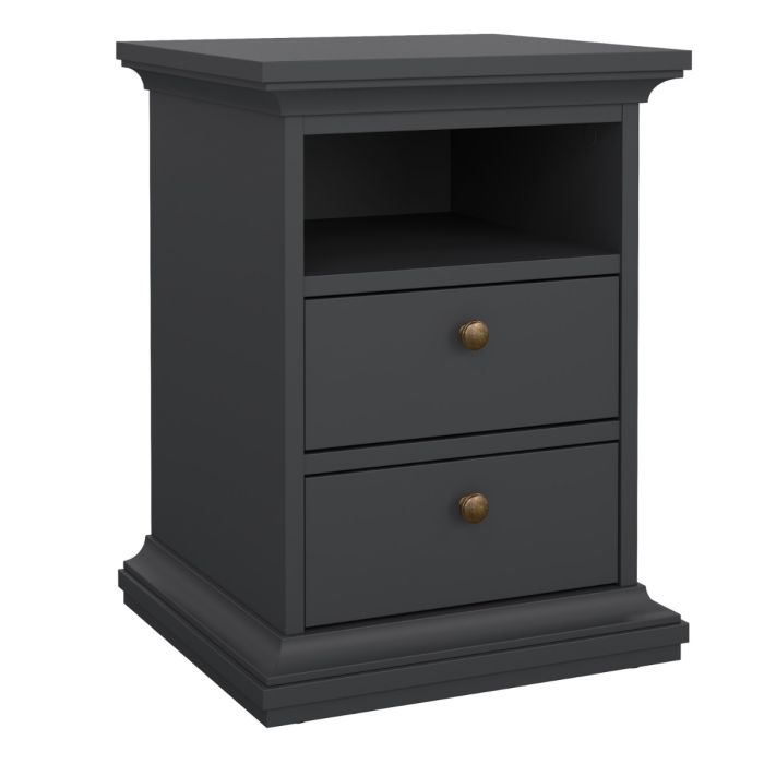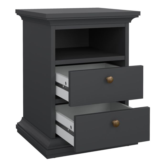 Paris Package - Bedside 2 Drawers + Chest of 4 Drawers + Wardrobe with 2 Doors Matt Grey