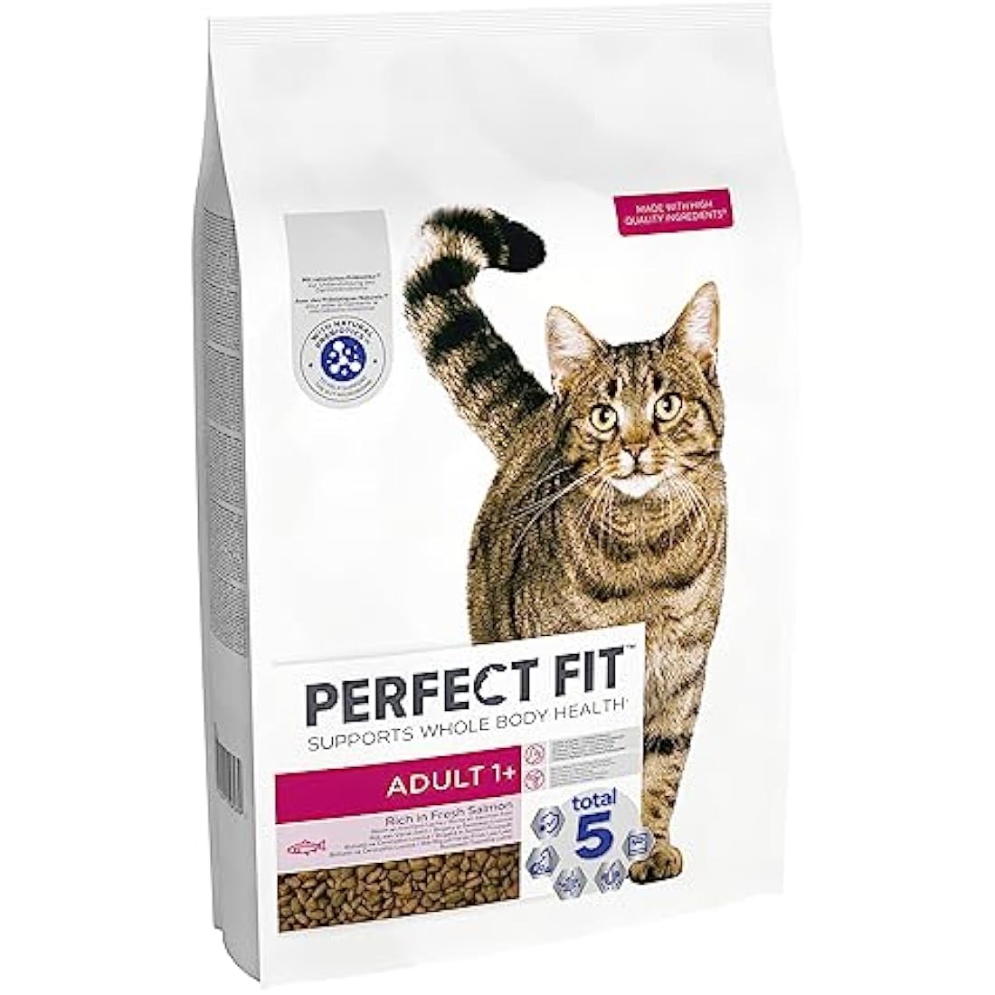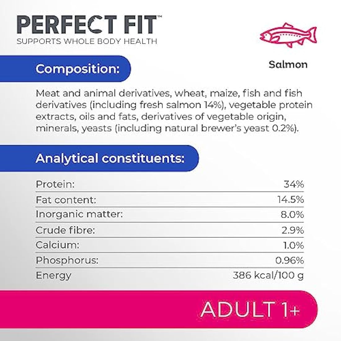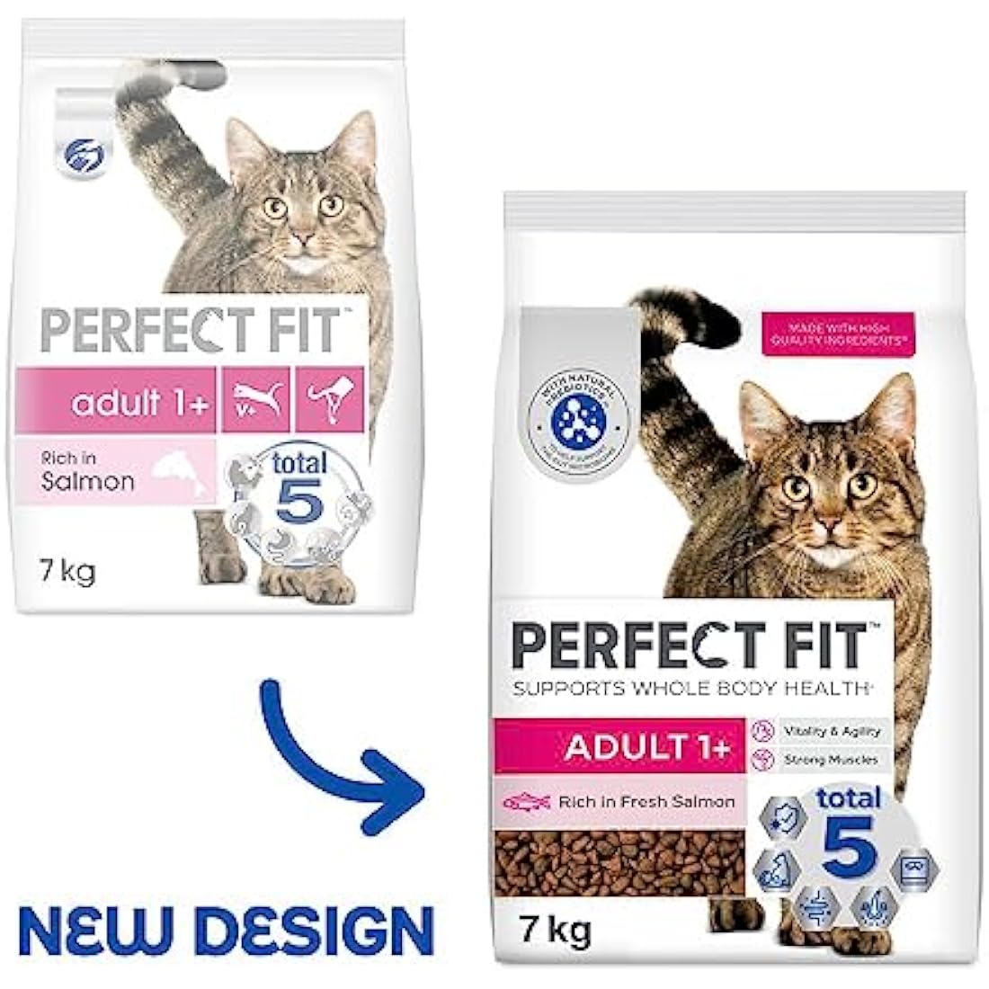 Perfect Fit Adult 1+ Complete Dry Cat Food for Adult Cats Aged 1+ Years, Rich in Salmon, 1 Bag (7 kg)