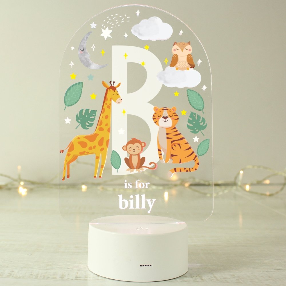 Illuminate your child's space with the Personalised Animal Alphabet LED Colour Changing Night Light, a charming and functional addition to any nursery or bedroom. This delightful night light not only serves it's purpose of providing a gentle glow during the night but also adds a personal touch that your little one will adore.