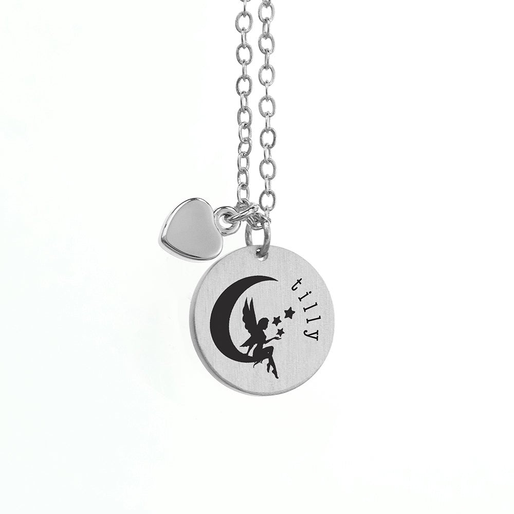 Personalised Fairy Matte Heart & Disc Necklace