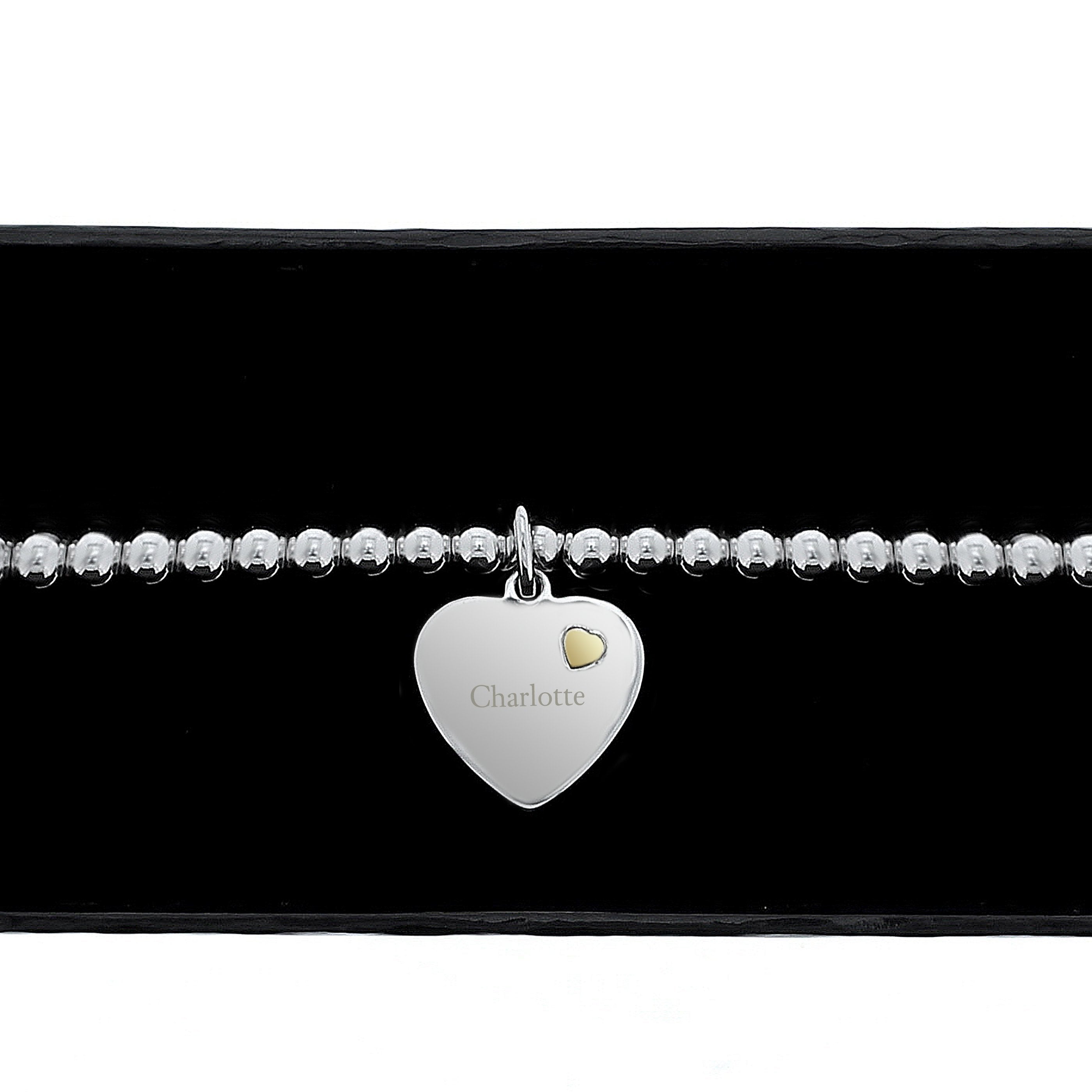 Why Choose This Bracelet? This personalised heart bracelet is more than just an accessory; it's a token of affection that can be cherished for years to come. The combination of sterling silver and gold plating not only enhances it's aesthetic appeal but also offers durability and resistance to tarnishing, ensuring that your gift remains as beautiful as the day it was given. It's an ideal choice for anyone looking to give a memorable gift that speaks volumes about their feelings.