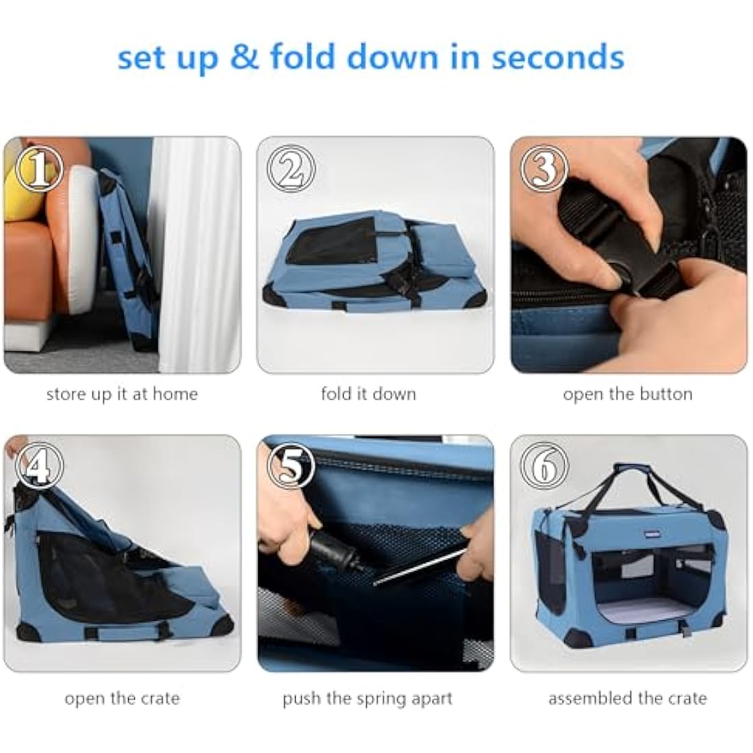 Petprsco Portable Collapsible Dog Crate, Travel Dog Crate 60x42x42cm with Soft Warm Blanket and Foldable Bowl for Large Cats & Small Dogs Indoor and Outdoor