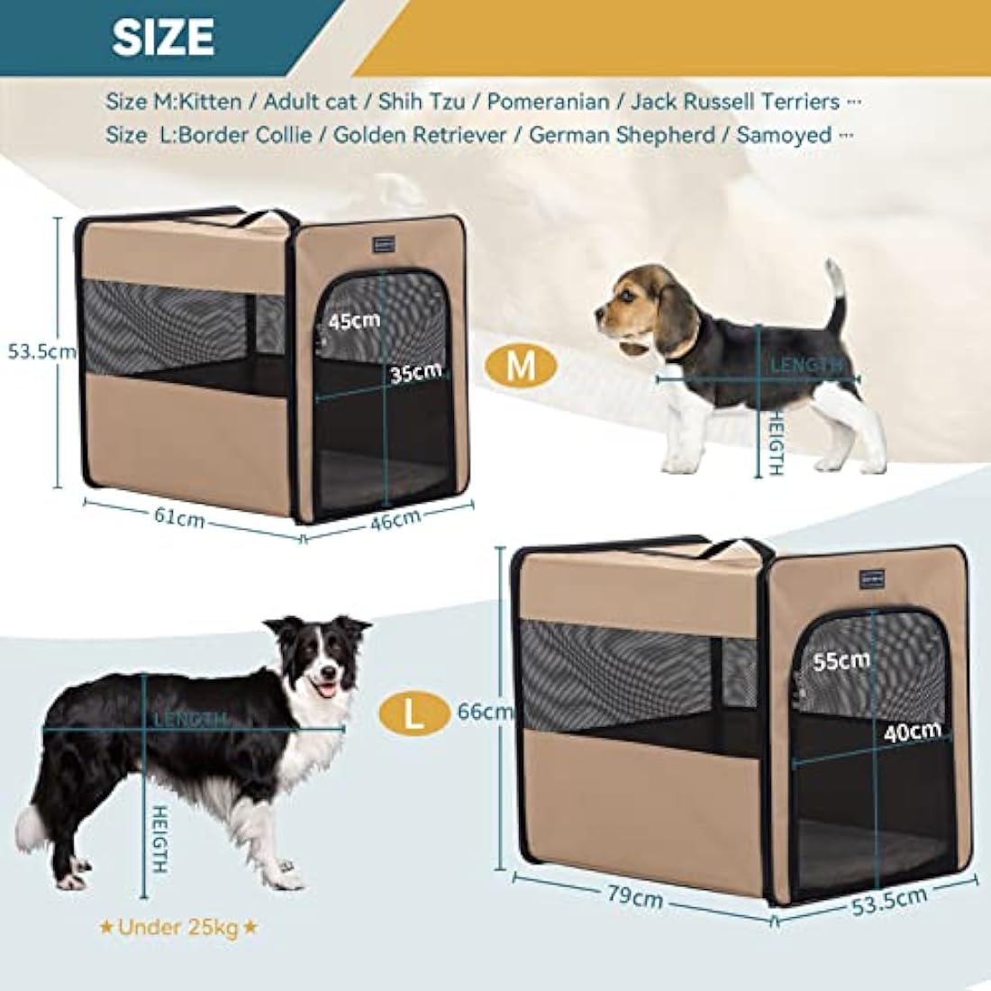 PETSFIT Dog Travel Crate, Portable Dog Crate - Large Dog Carrier with Thicken Mat, Easy to Fold, Sturdy but Lightweight, Perfect for Traveling, Collapsible Dog Kennel, Khaki