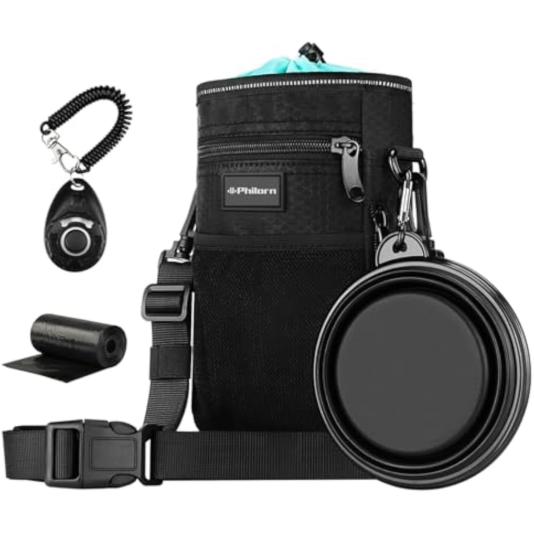 Philorn Dog Treat Pouch,Dog Walking Bag for Pet Training Treats Pouch with Free Clicker, Collapsible Bowl & Poop Bag Holder, Dog Treat Bag Water-Resistant Reflective Design, 3 Ways to Wear