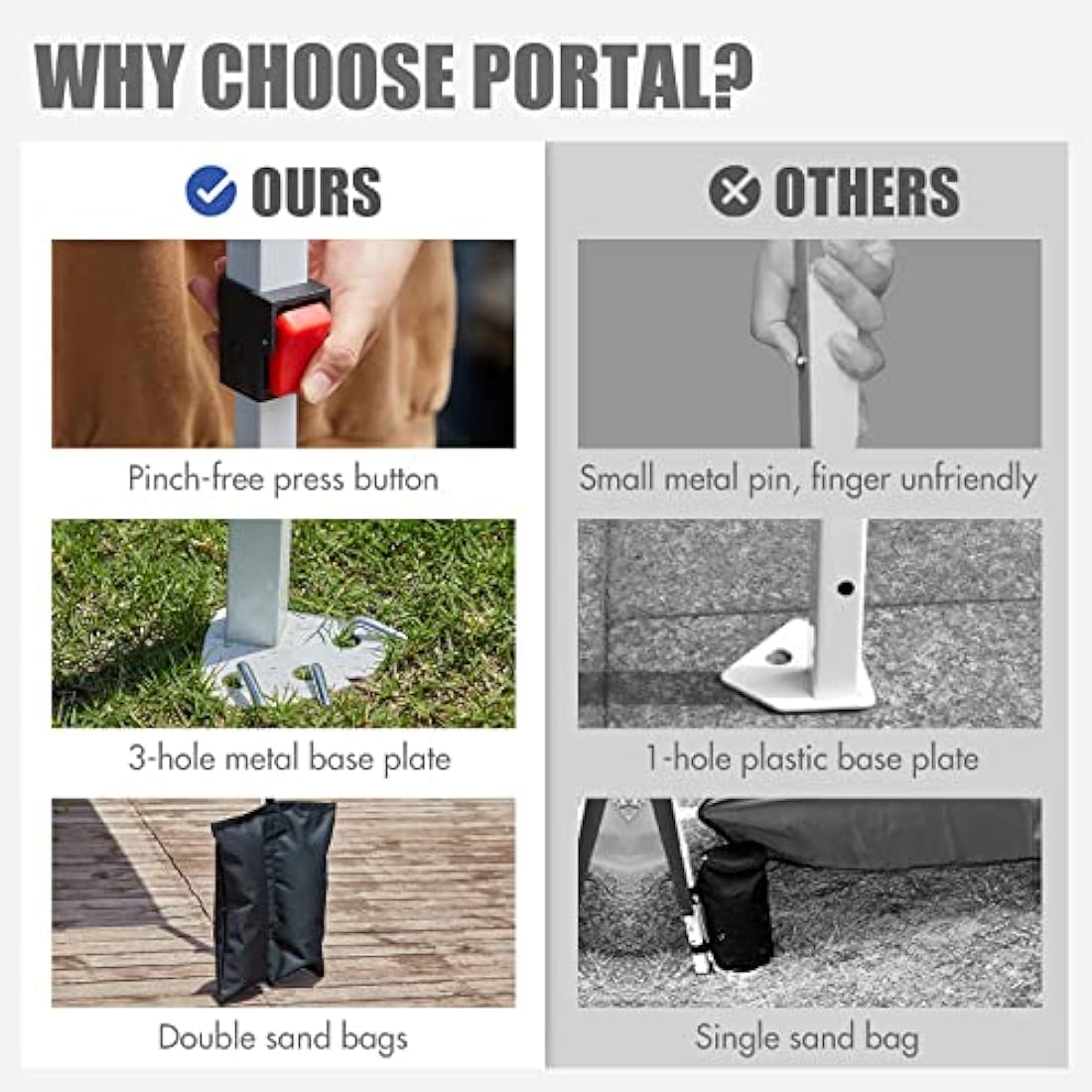 PORTAL Pop up Gazebo 2.5m x 2.5m Heavy Duty Commercial Grade Instant Event Shelter Garden Canopy Outdoor Camping Gazebo 1000mm Water Resistant Sun Shade Shelter Fire Retardant for Hot Tub Beach