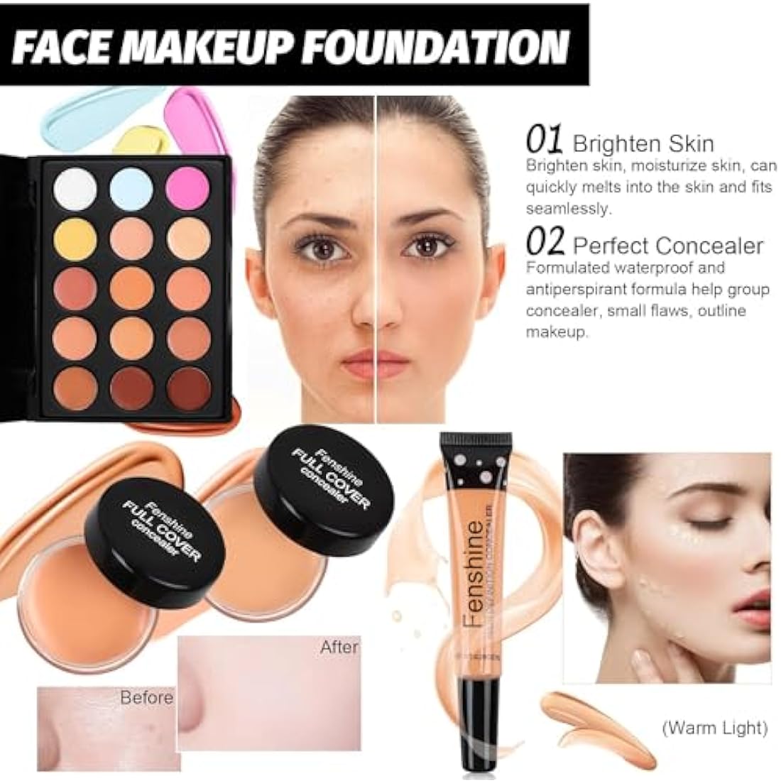 Professional All in One Makeup Set, Fenshine Cosmetic Make Up Starter Kit With Storage Bag Portable Travel Make Up Palette Eyeshadow Foundation Lip Gloss for Teenage & Adults (30PCS)