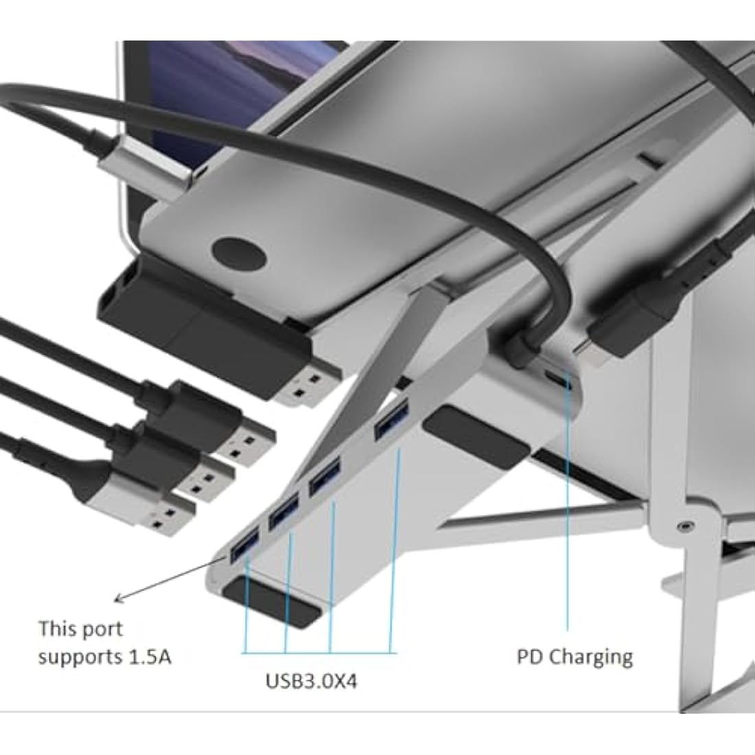 Properav Portable Aluminium Laptop Stand with Integrated 100W PD USB-C Charging Hub inc 4 x USA-A Ports for Dell, Toshiba, HP, Samsung, MacBook, Lenovo