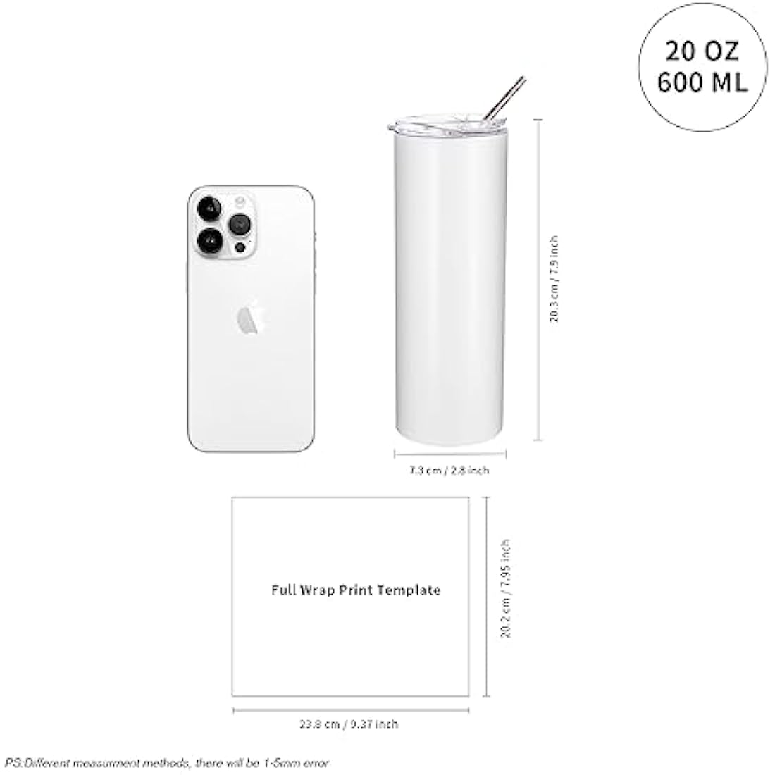 • Completely Straight:Our sublimation skinny tumbler is completely straight not tapered,which is easy to make the full wrap sublimation print by mug tumbler press machine or sublimation oven.