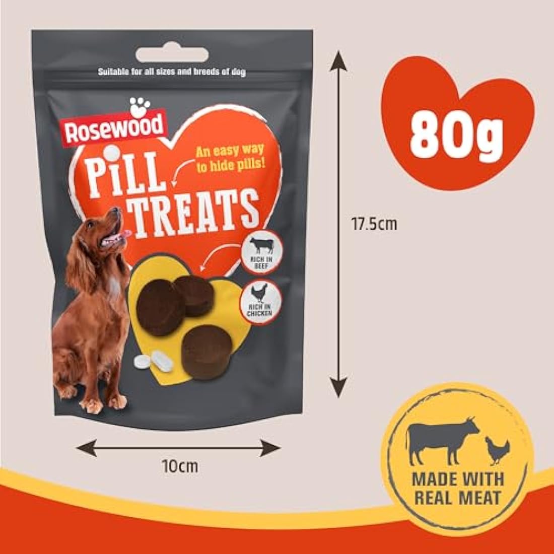 Rosewood Pill Treats for Dogs - Easy Way to Hide Tablets and Pills, Soft Dog Treats for Medicine, Rich in Tasty Chicken and Beef, for Small, Medium and Large Dogs (Case of 12 x 80g)