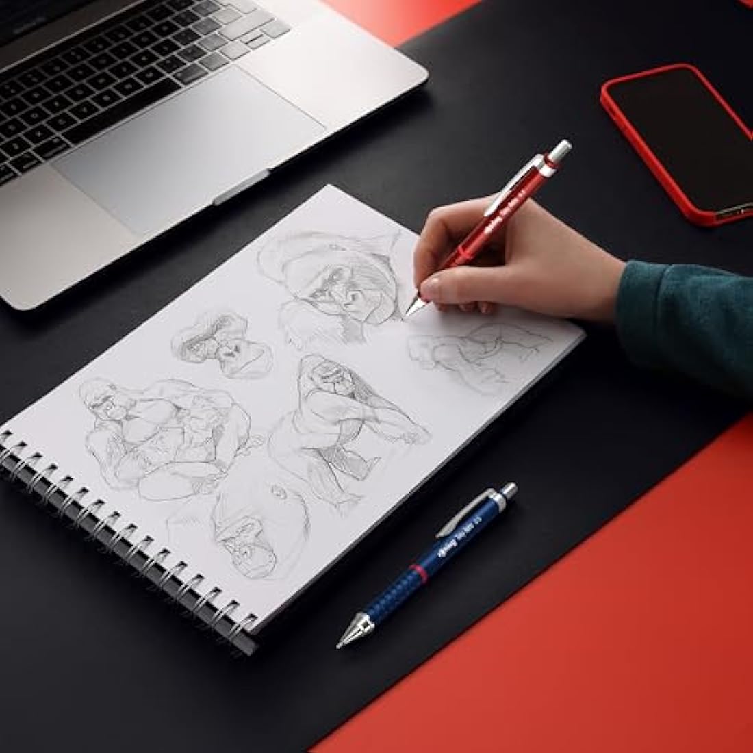 rOtring Tikky Retro Mechanical Pencils | 2B 0.5 mm | Grey Barrels | with Comfort Rippled Grip | 12 Count