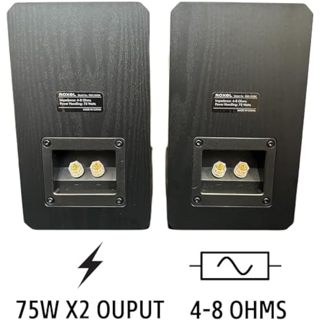 Roxel RBS-300 Passive Bookshelf Speaker, Black Wood Effect Cabinet with 4 inch Enhanced Carbon Fibre Woofer, 1 Inch Silk Dome Tweeter, Detailed and Refined Sound150W RMS (Black Wood)