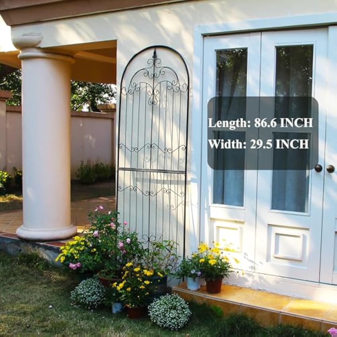 SCENDOR 1 Pack Garden Trellis for Climbing Plants 86.6" H x 29.5" W Tall Garden Trellis Wrought Iron Heavy Scroll Metal Decoration Lawn Patio for Rose Clematis Ivy Weather Resistant