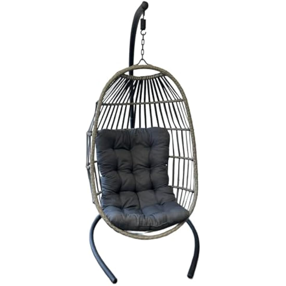 SEDOL Hanging Egg Chair with Stand – Foldable Rattan Swing Chair for Garden, Patio or Balcony – Indoor Outdoor Collapsible Hanging Seat with Cushion – Summer Relaxation Garden Chair (Grey)