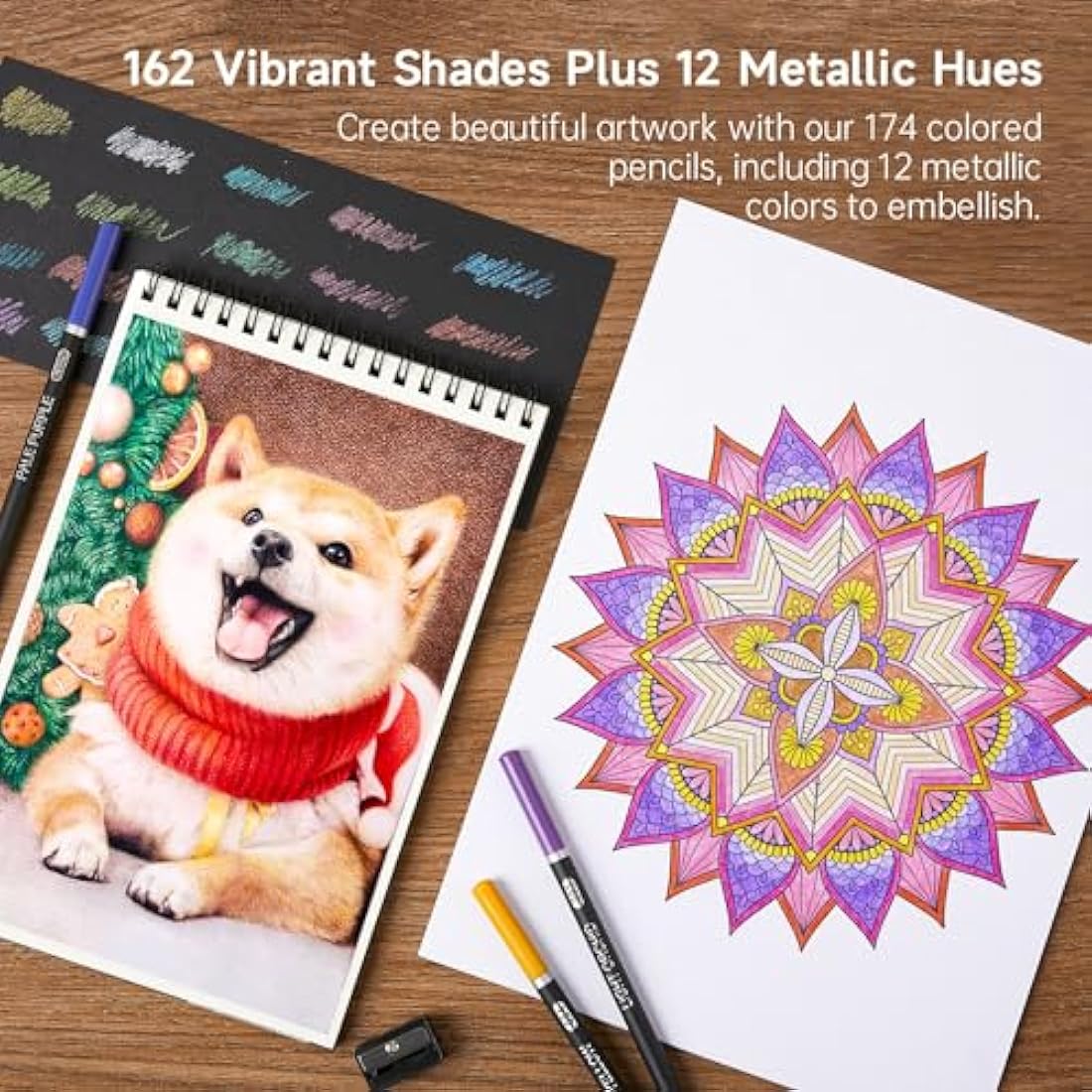 Shuttle Art 174 Colours Professional Colouring Pencils, Soft Core Coloured Pencils Set with 1 Colouring Book,1 Sketch Pad, 4 Sharpener, 2 Pencil Extender, Artists Kids Adults Colouring, Drawing