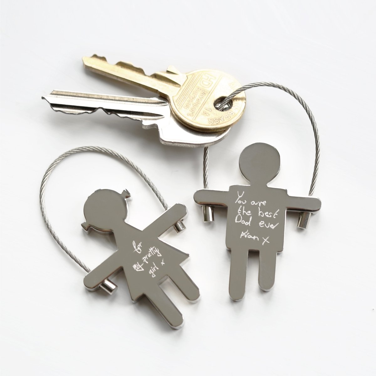 Perhaps the coolest thing about this key ring is that it holds your keys on the skipping rope wire, no more pesky old key ring that wears out once you take a key off a few times. Skipping Sam has you sorted, just unclip the end and add or remove keys with ease. Perfectly engraved with your own actual handwriting.