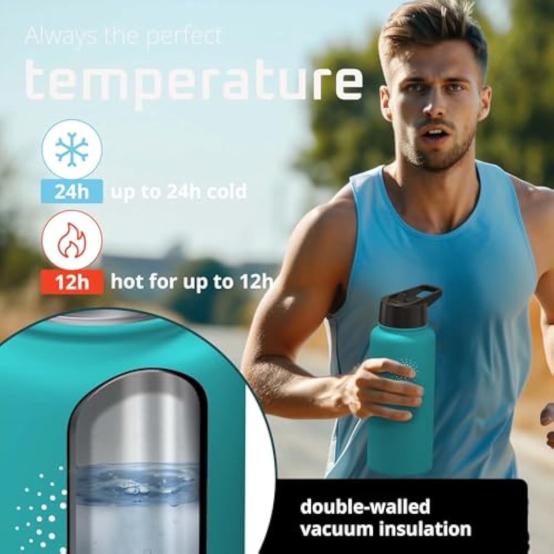 Stainless Steel Water Bottle with Straw & 3 Lids: 1 & 0,5L Leak-Proof BPA-Free Vacuum Insulated ACTIVE FLASK Drinking Bottles Hot Cold: Double Walled Outdoor Drink Thermo Mug Tea Coffee Sport Gym Bike