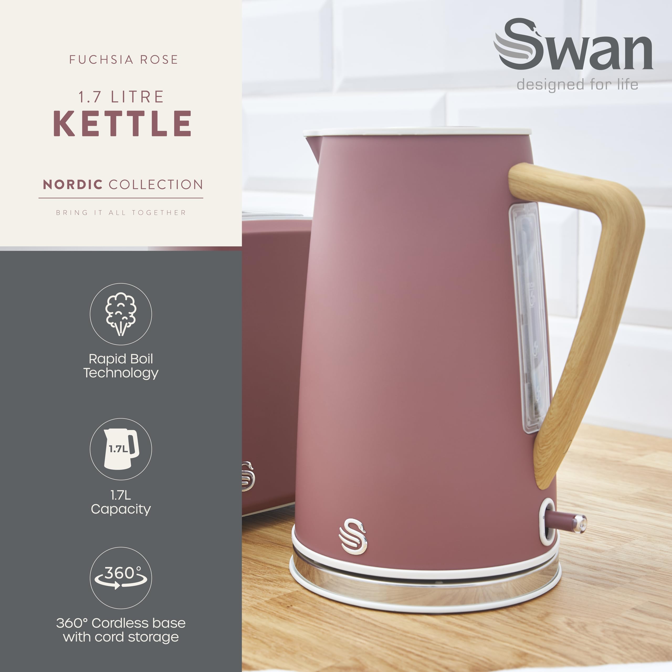 Swan SK14610FUS Nordic Cordless Jug Kettle with Fast Boil Technology, Overheat Protection, Soft Touch Handle, 1.7L, 3KW, Fuchsia Rose, Fusia