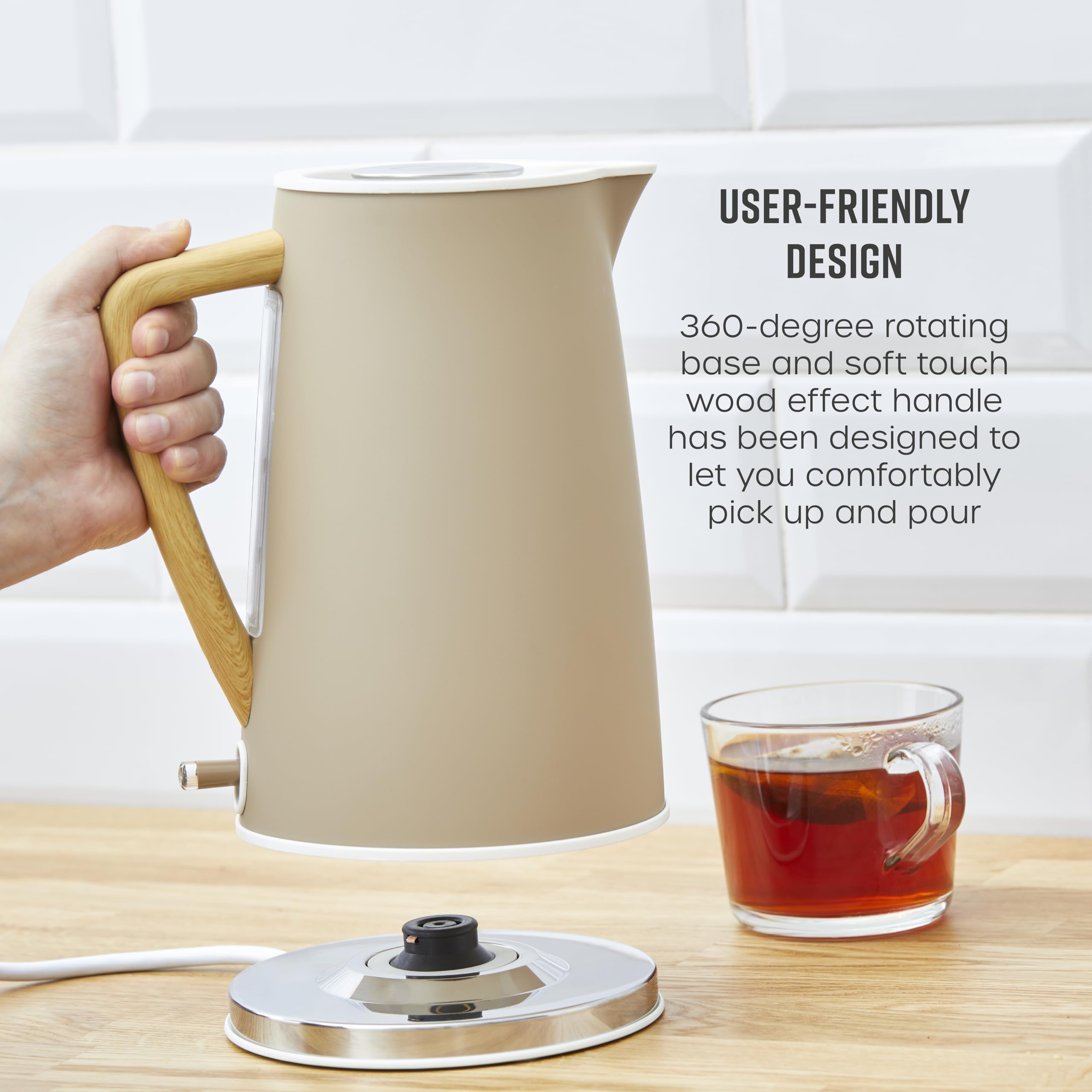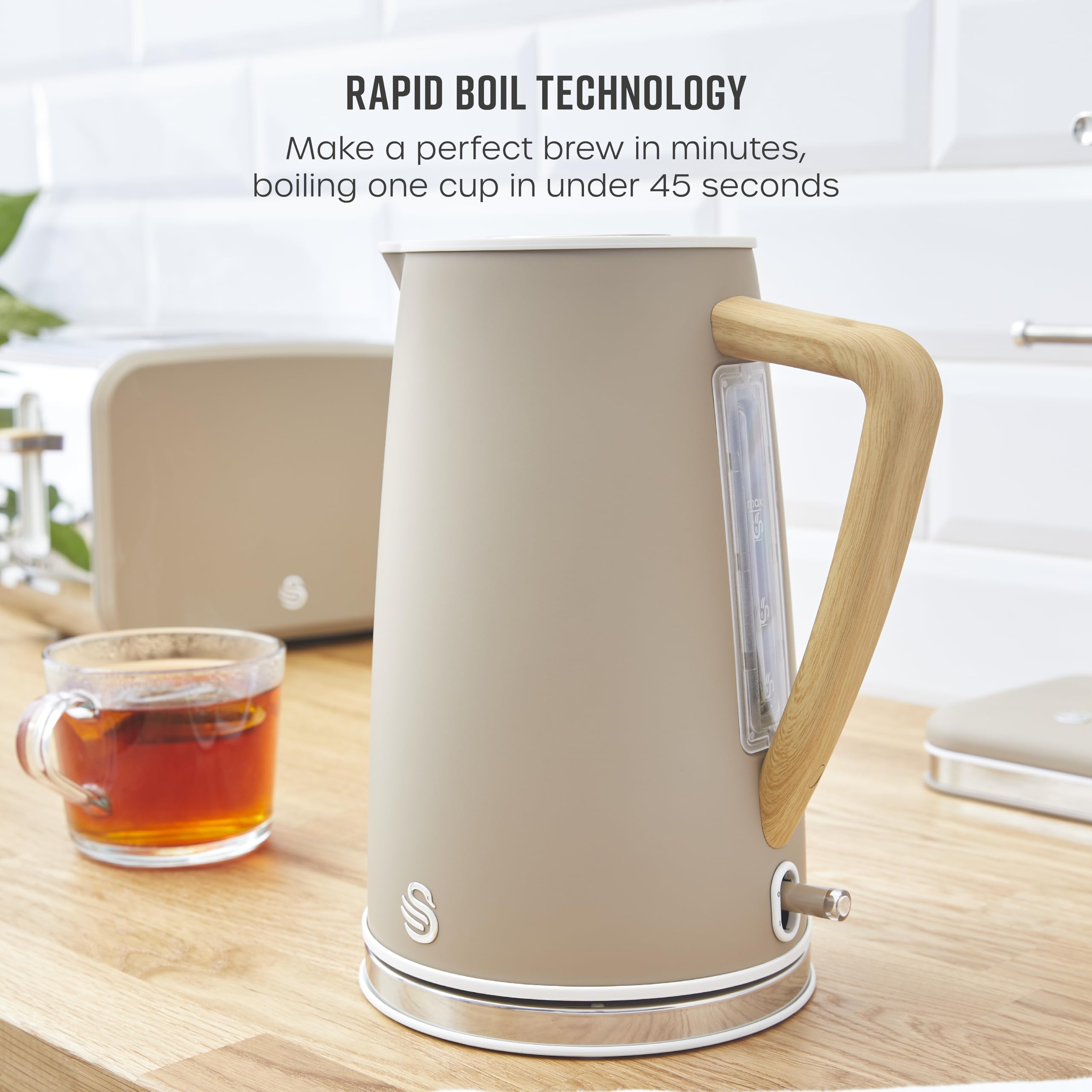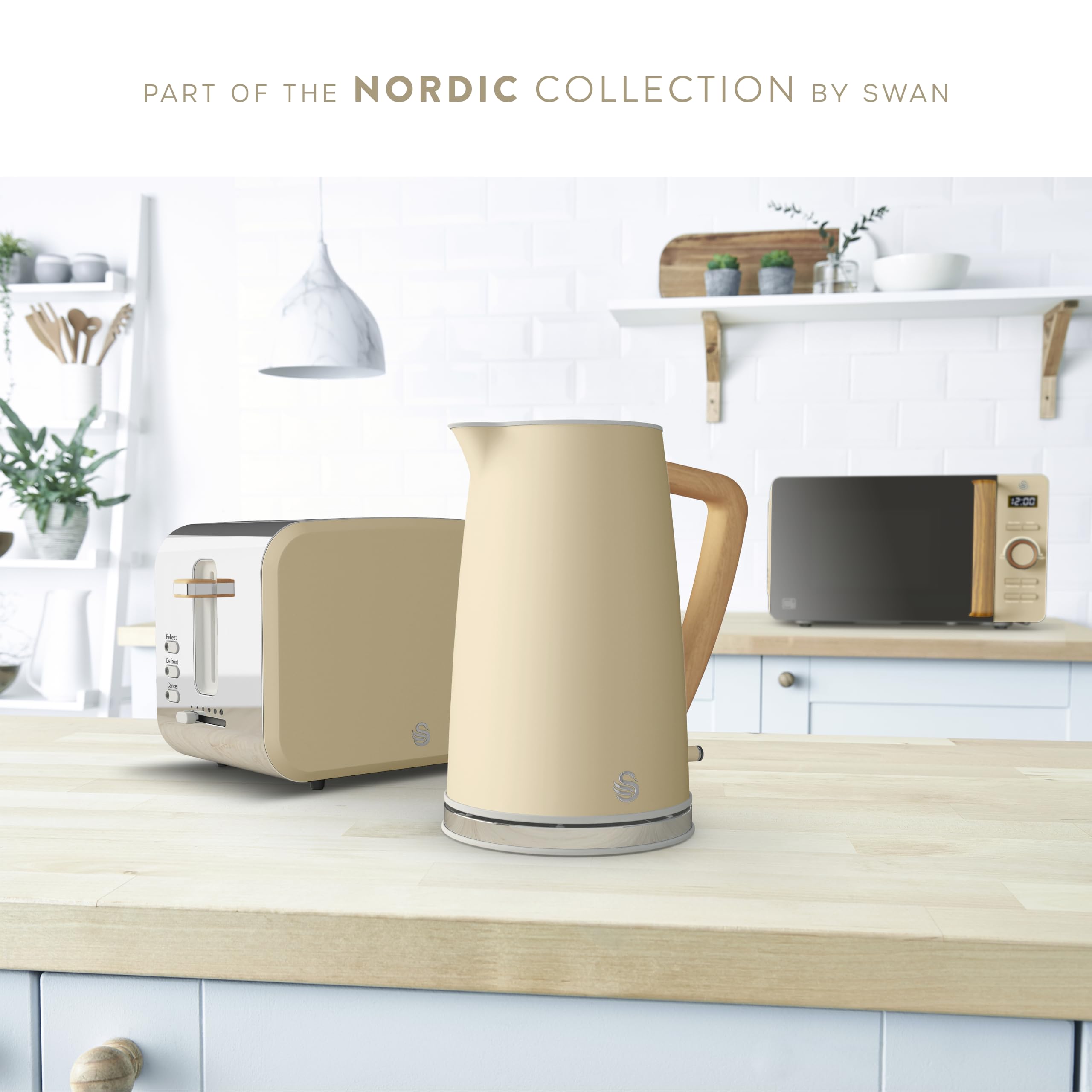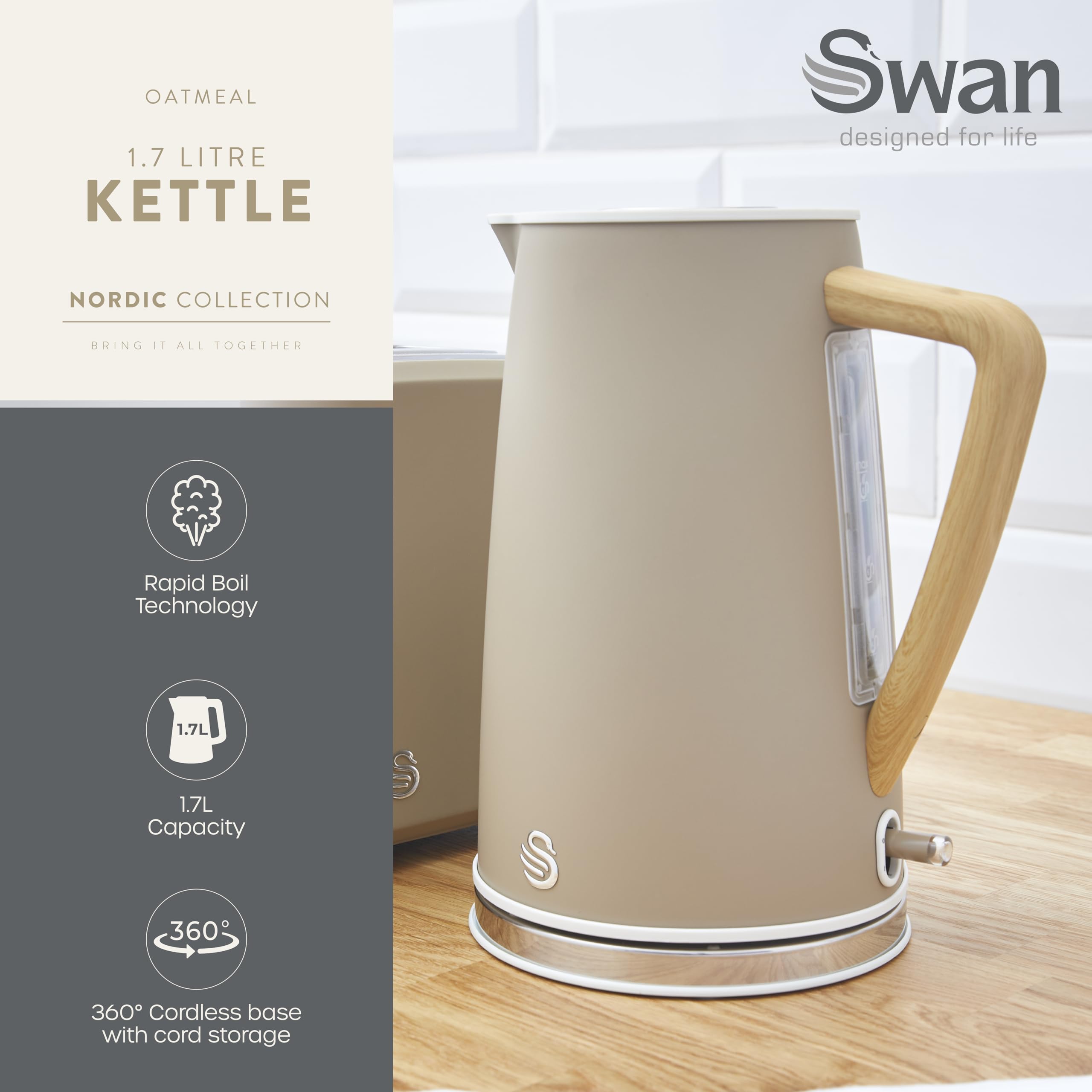 Swan SK14610OAT Nordic Cordless Jug Kettle with Fast Boil Technology, Overheat Protection, Soft Touch Handle, 1.7L, 3KW, Oatmeal, White