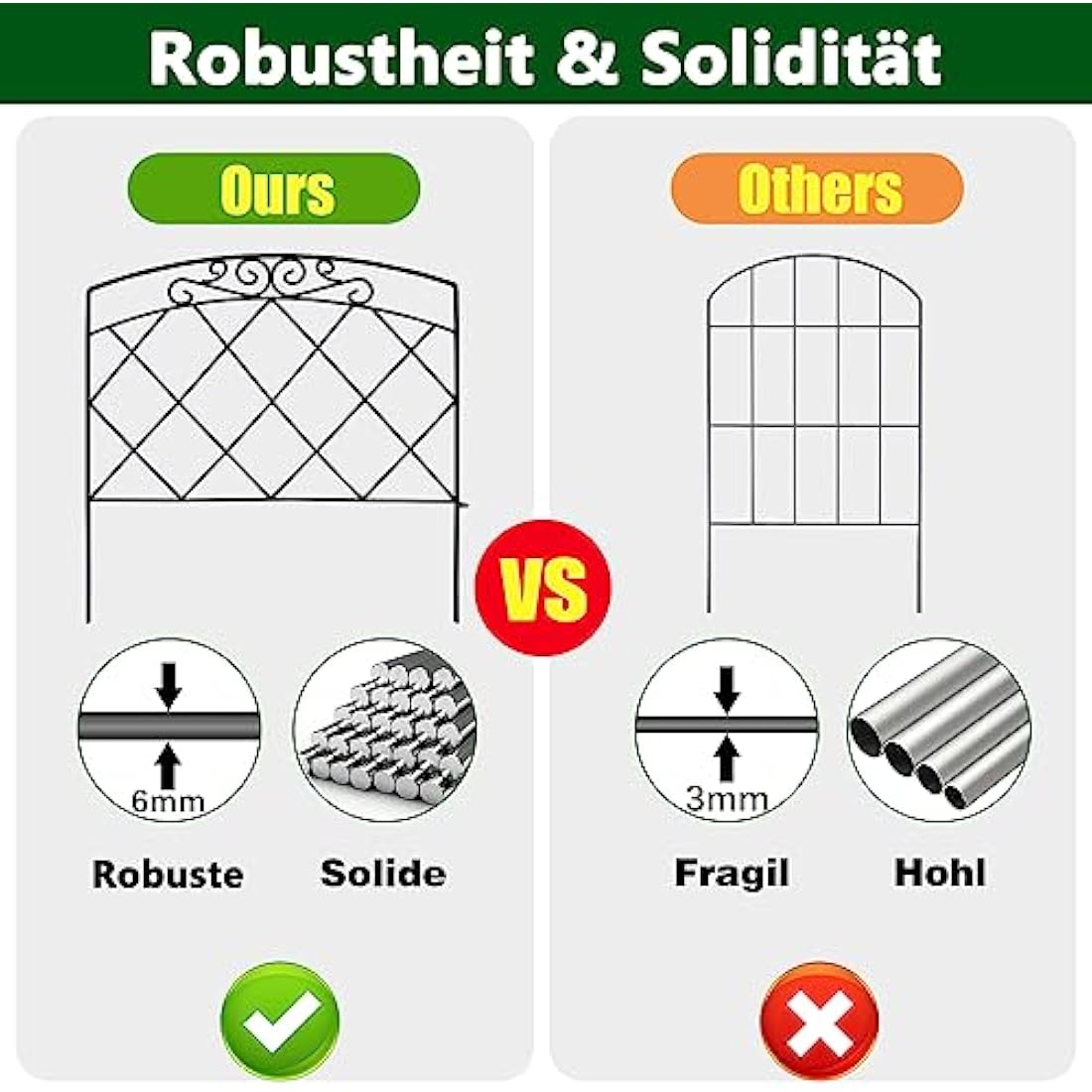 Thealyn Decorative Garden Fence 60cm (H) x 3m (L) Rustproof Metal Fence Panels No Dig Fence for Dogs Yard Patio Animal Barrier Flower Bed