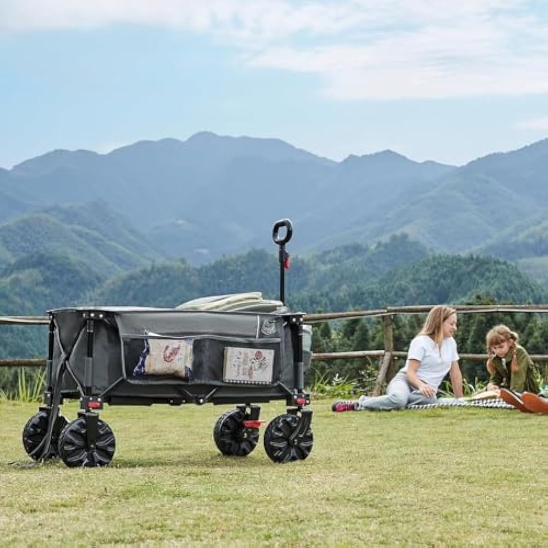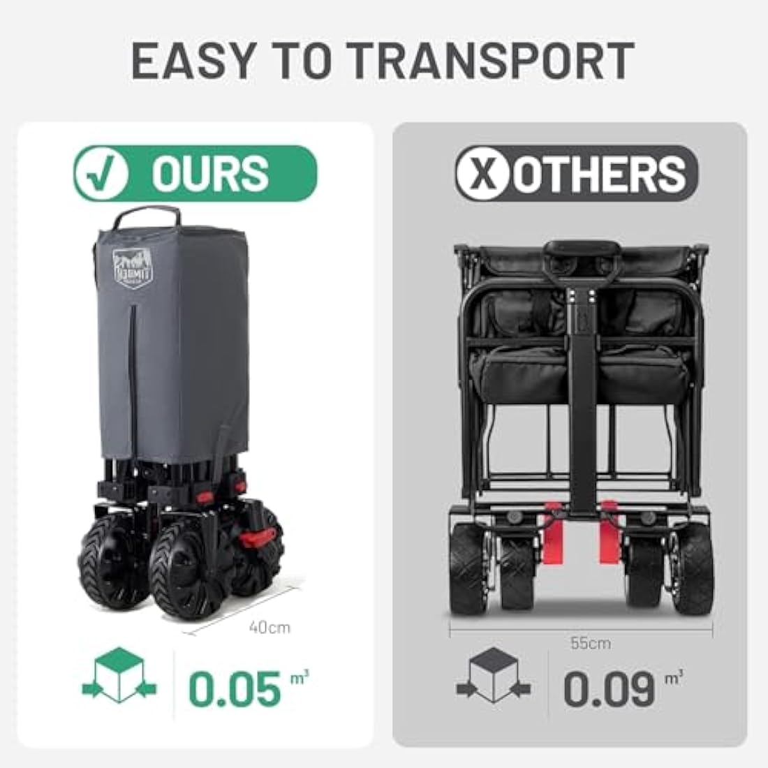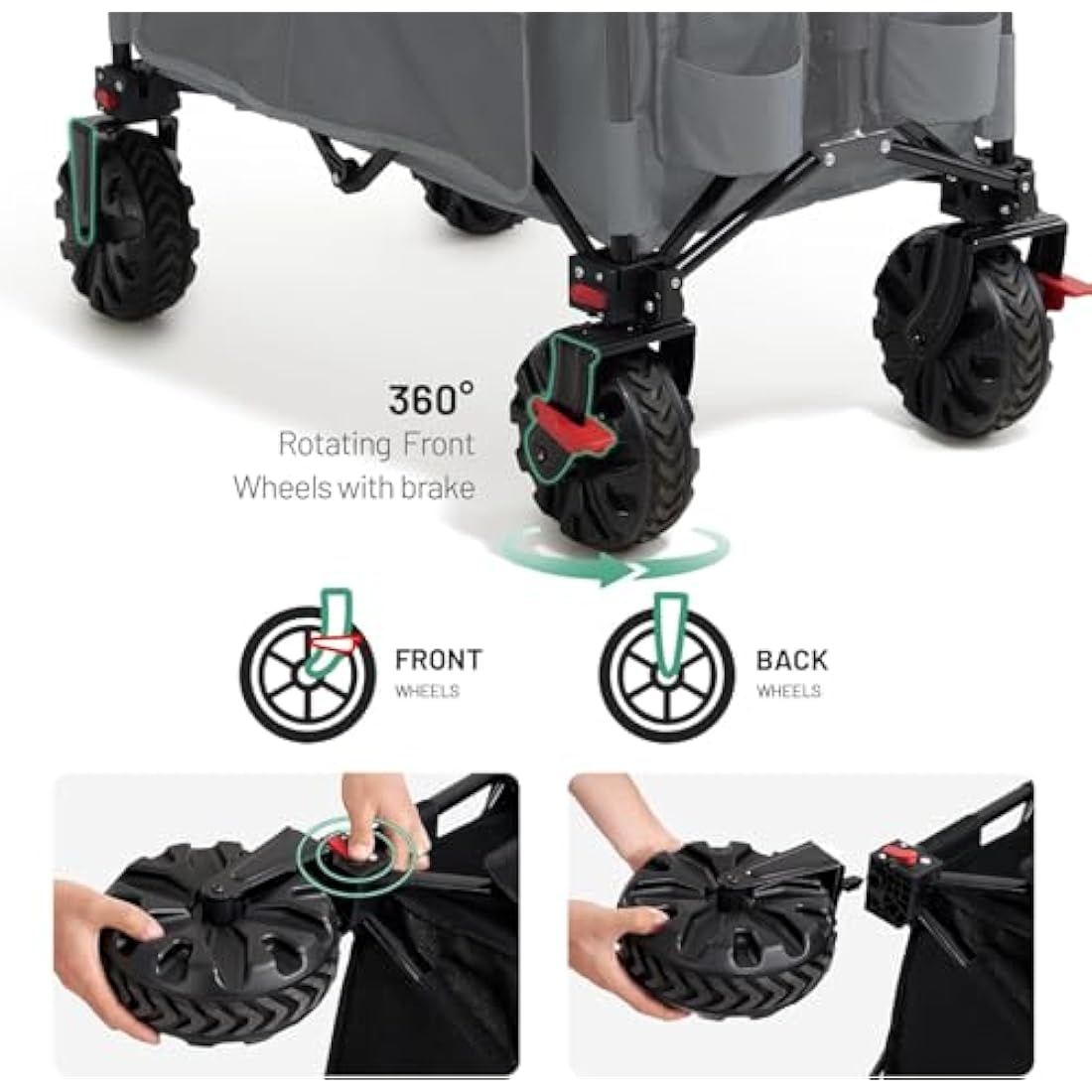 TIMBER RIDGE Festival Trolley on Wheels with Brakes, 200L Folding Camping Beach Trolley with Adjustable Handle & Cover Bag, 100kg Heavy Duty Cart Wagon for Outdoor Garden Picnic