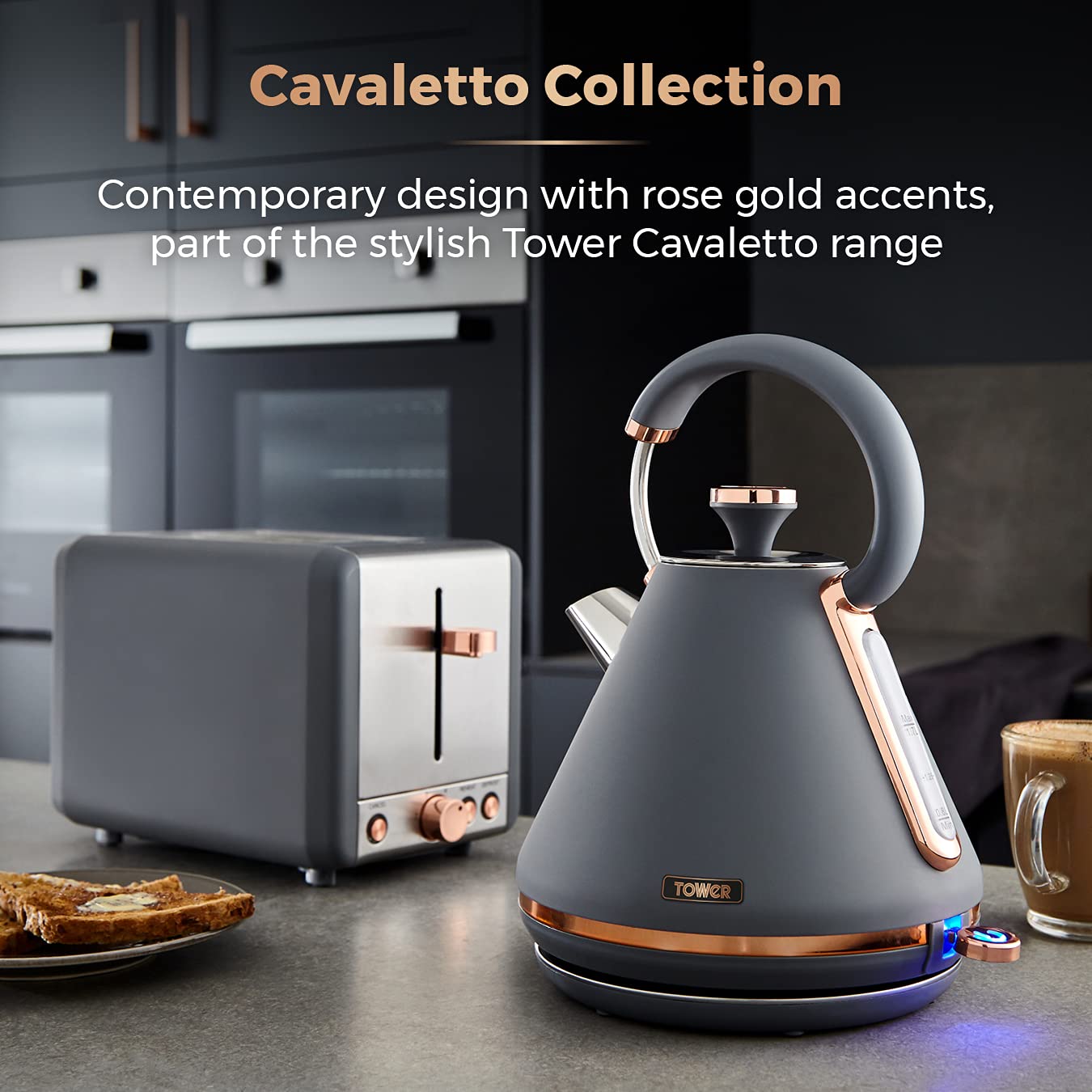 Tower T10044RGG Cavaletto Pyramid Kettle with Fast Boil, Detachable Filter, 1.7 Litre, 3000 W, Grey and Rose Gold
