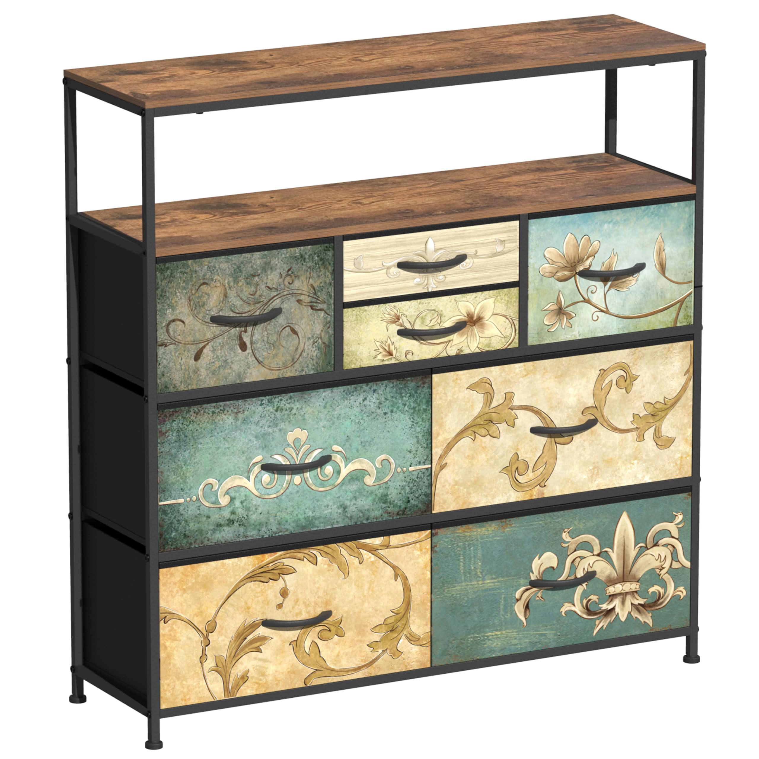 VEDECASA Chest of Drawers with Open Shelf Dresser for Bedroom with 8 Drawer Storage Organizer Unit TV Stand for Living Room Hallways Closet with