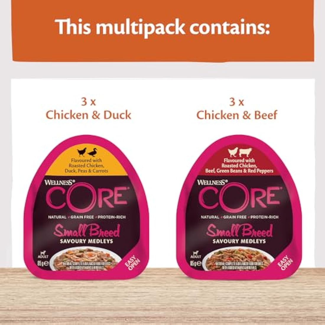 Wellness CORE Small Breed Savoury Medleys, Wet Dog Food Small Dogs, Dog Food Wet Smaller Breed, Grain Free, High Meat Content, Butcher Selection Mix, 6 X 85 G