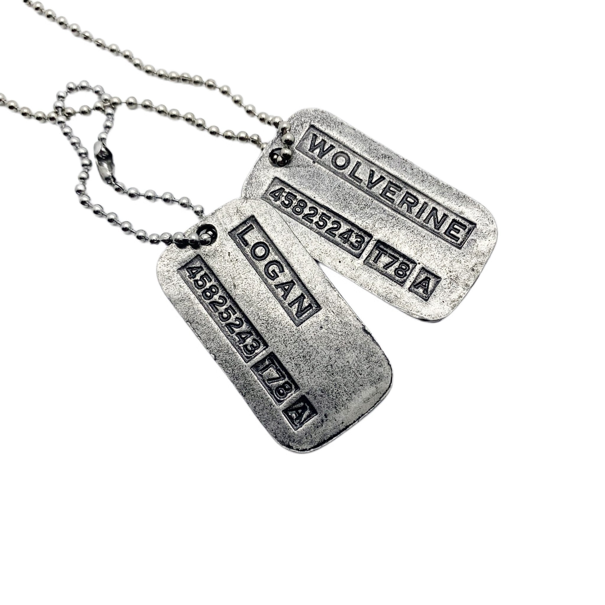 - 'WOLVERINE' James Howlett Accurate dog tag set. 2 X alloy metal dog tags, 1 X 76cm & 1 X 10cm 304 grade stainless steel chains