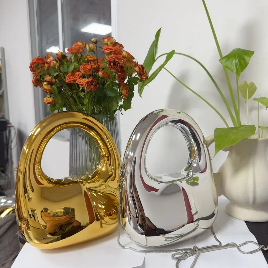 Women's Arylic Color Block Solid Color Streetwear Oval Magnetic Buckle Shoulder Bag Handbag