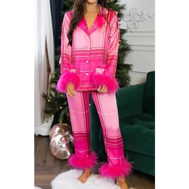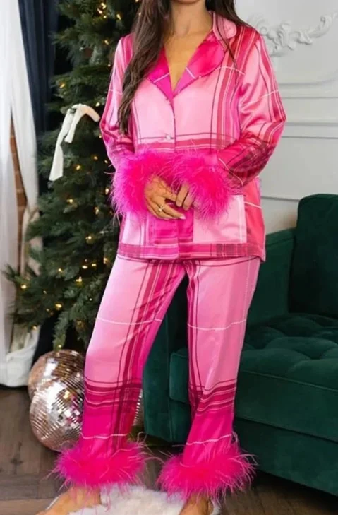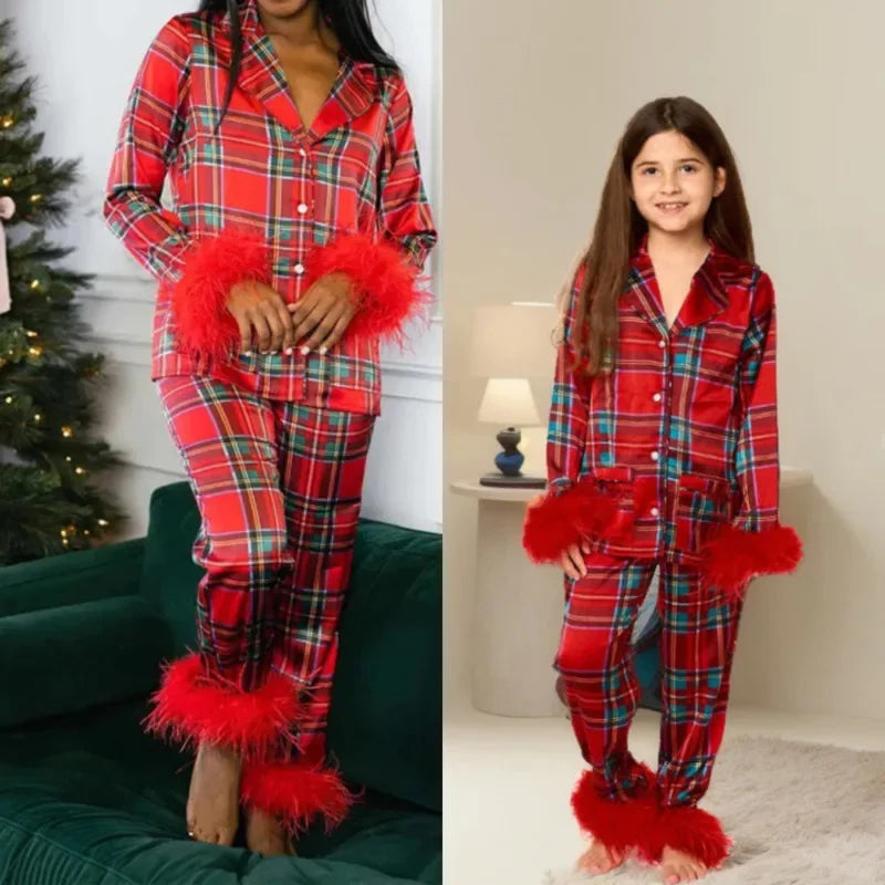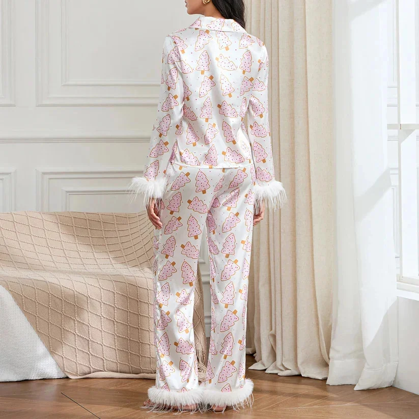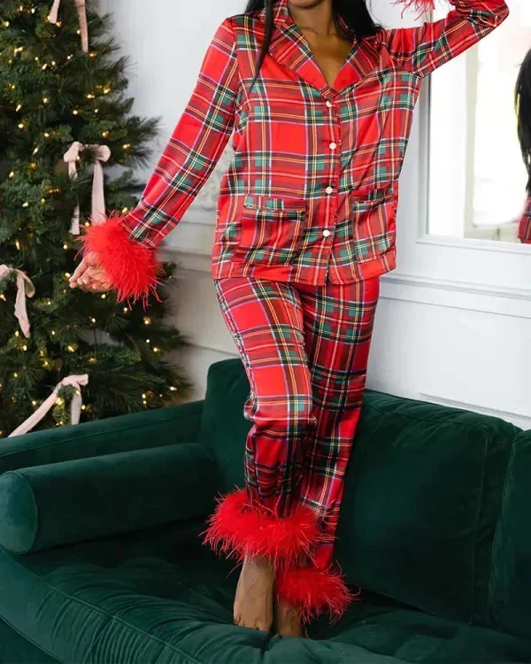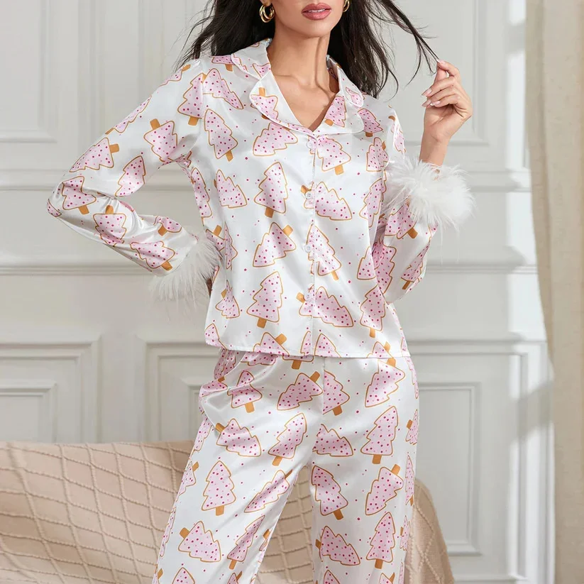 Women's Christmas Tree Plaid Satin Print Pajama Set