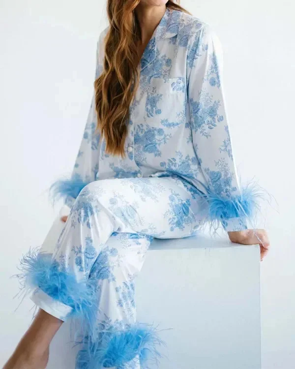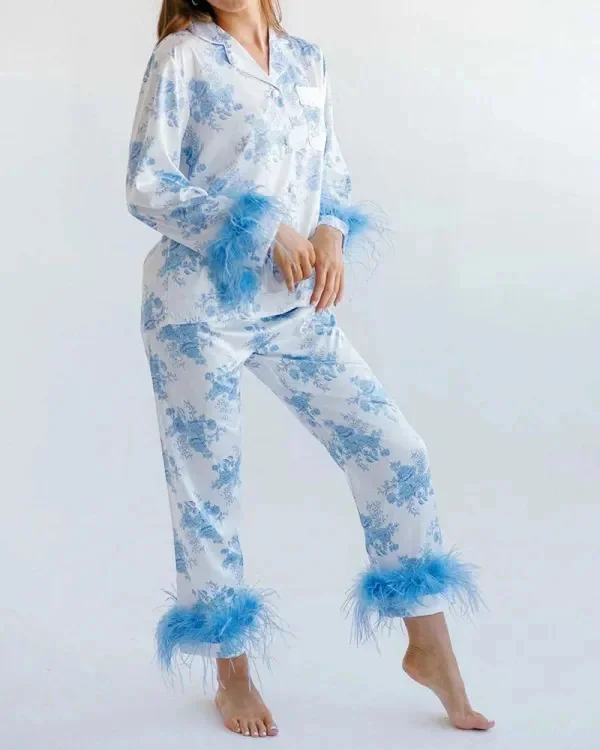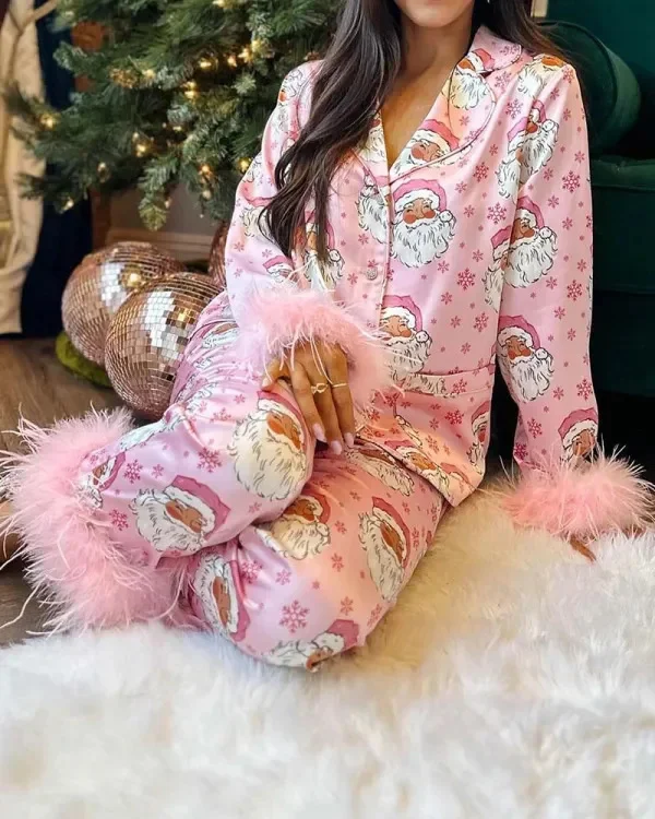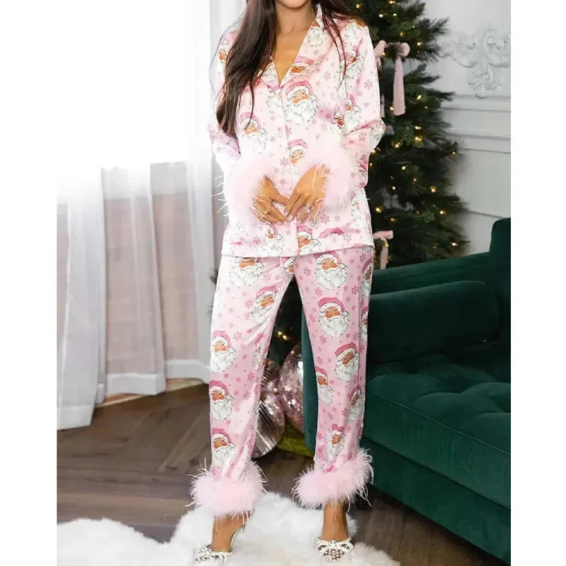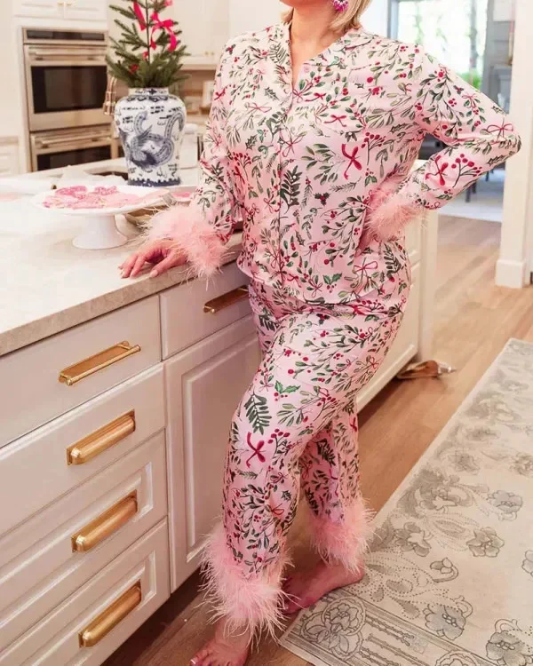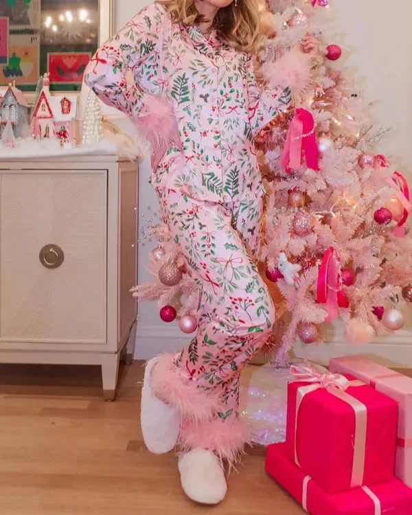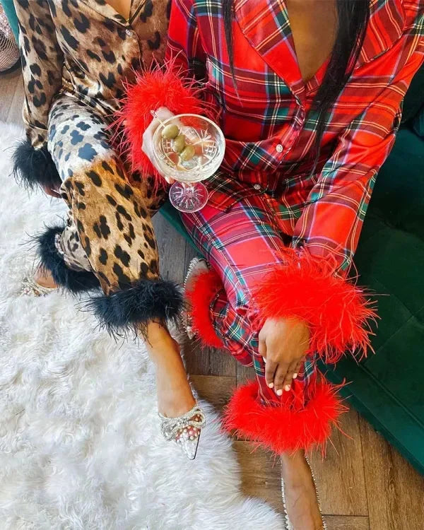 Women's Christmas Tree Plaid Satin Print Pajama Set
