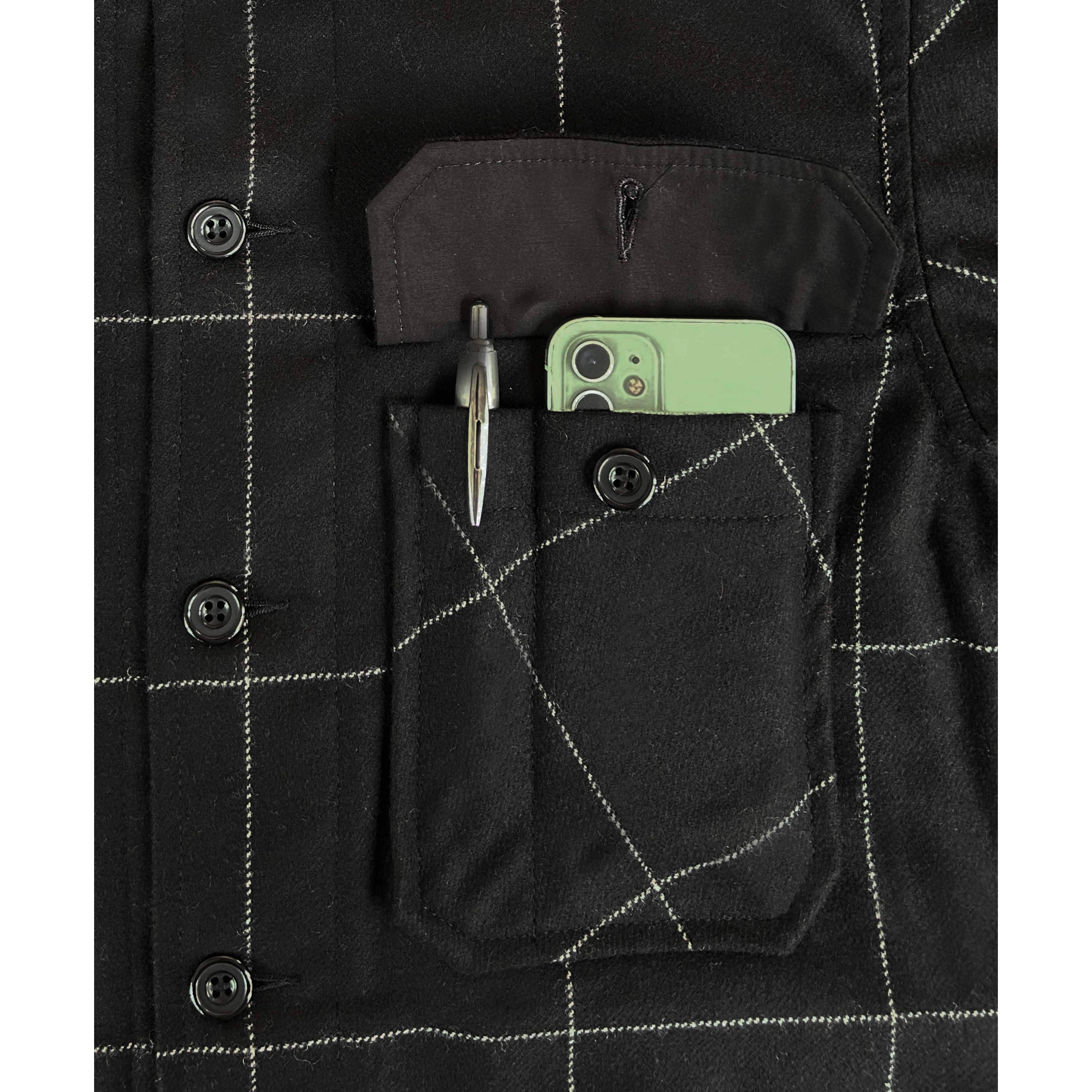 Black Window Pane Workshirt Made in London's East End from dead stock sustainably sourced 100% Wool. Features two upper breast... Read more